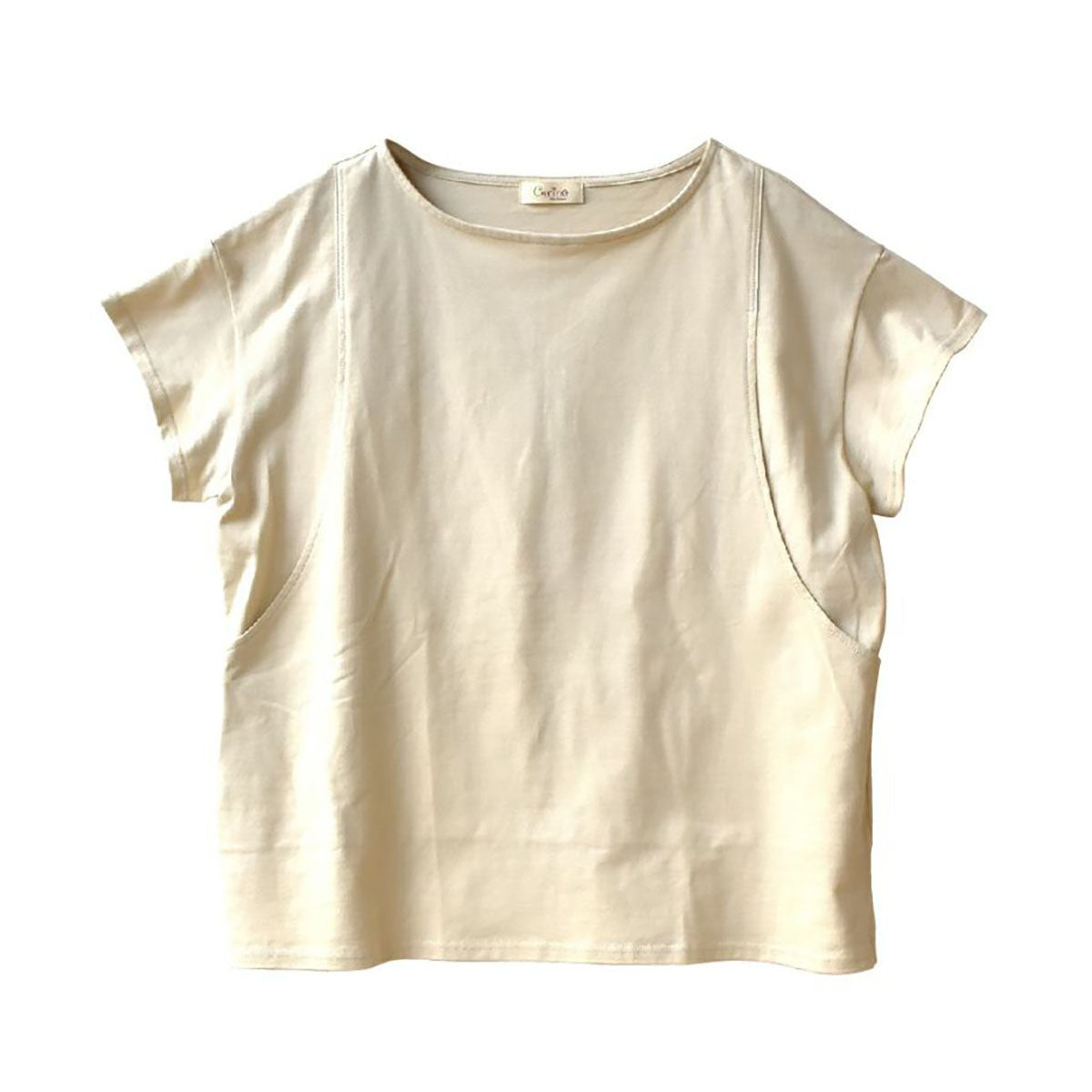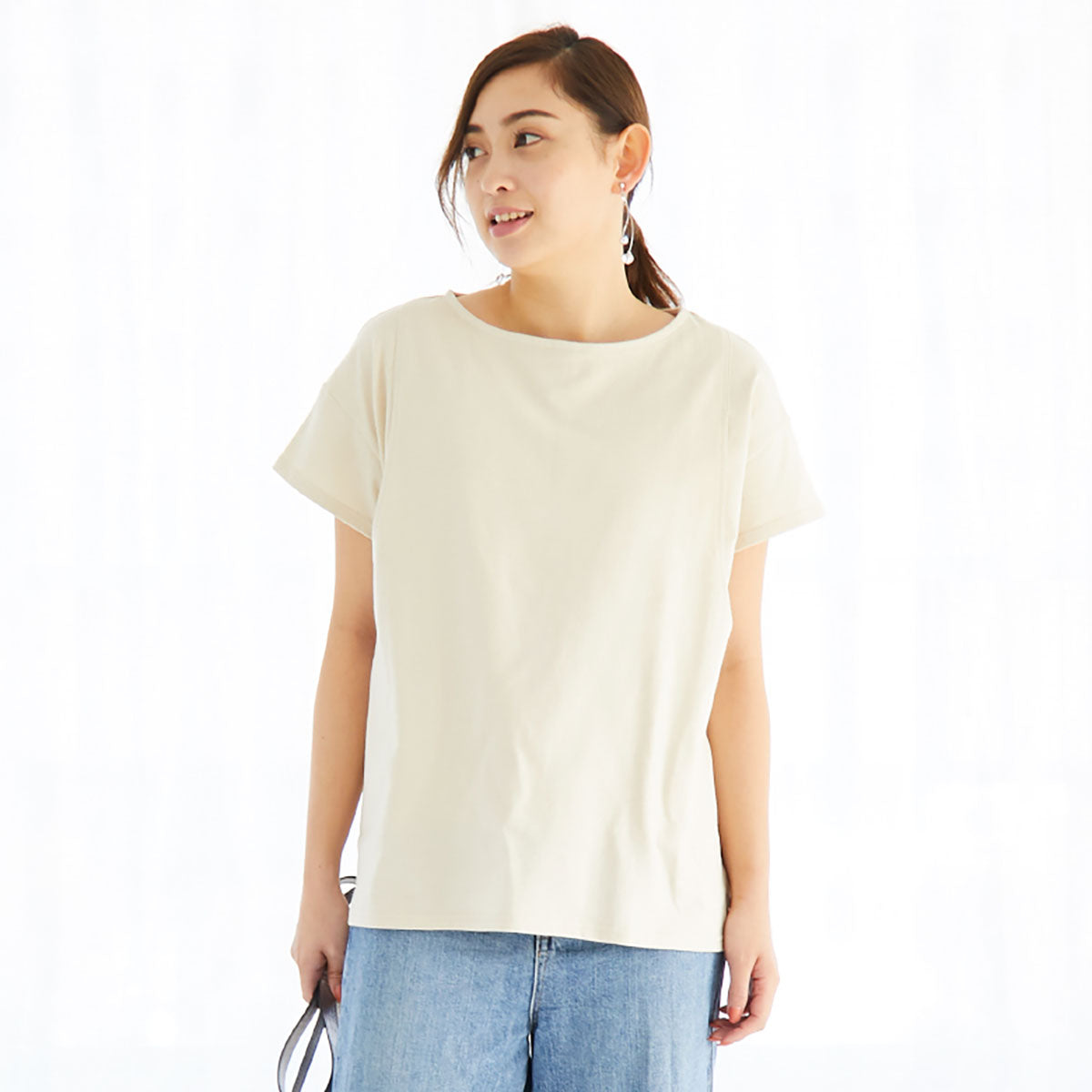 シンプルで、身幅ゆったりめの着やすく合わせやすいTシャツ。