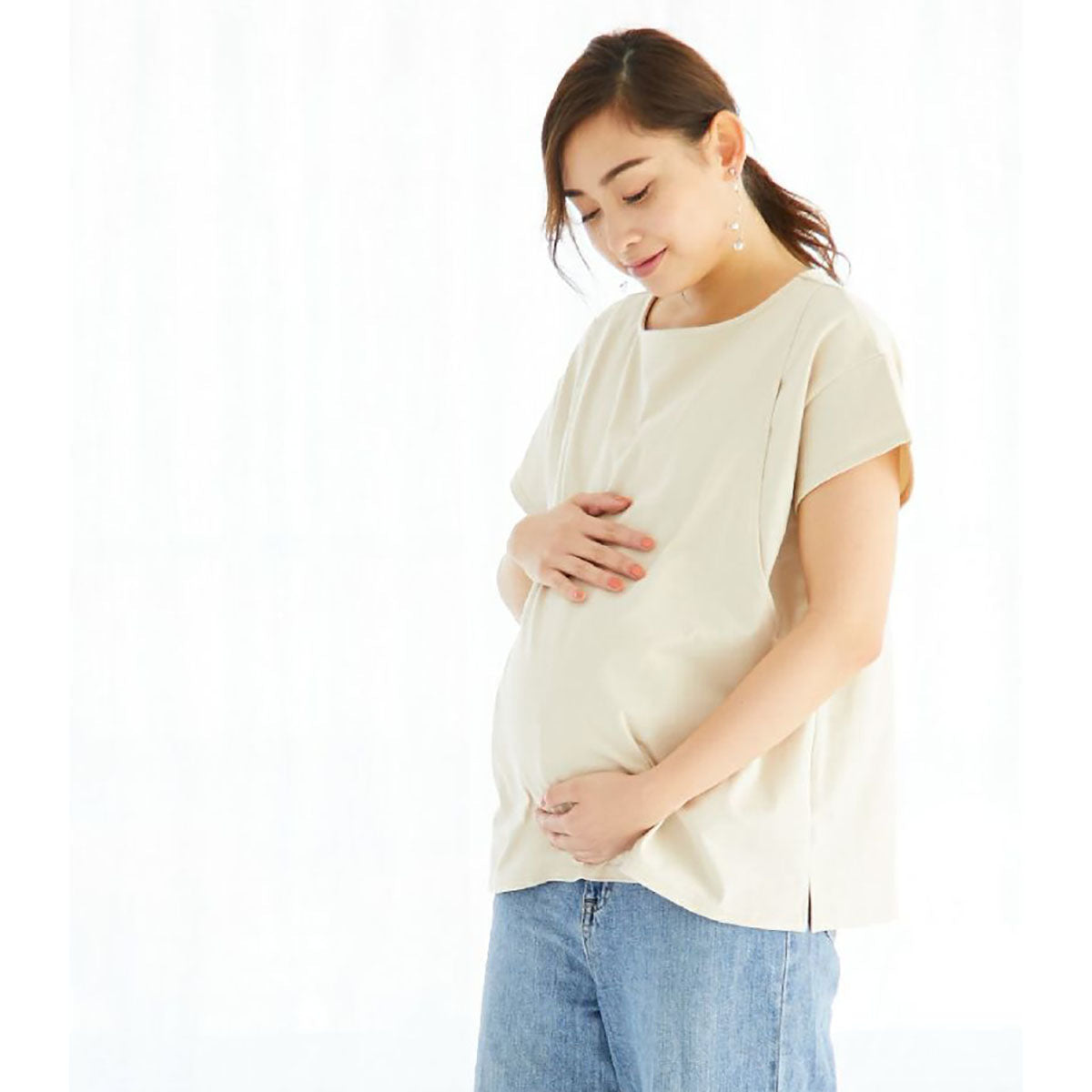 授乳するためのスリット部分が胸の両サイドにあるサイドスリットタイプの授乳服で、授乳がしやすく抱っこ紐との相性が抜群です。