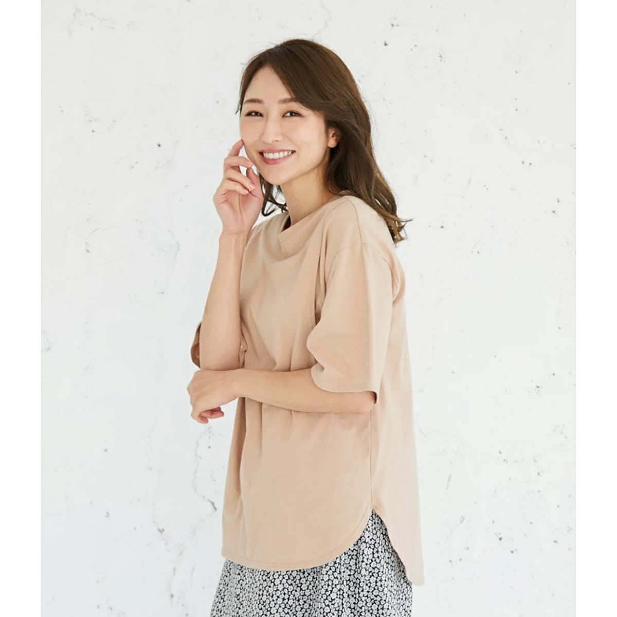 オーバーサイズのシンプルなTシャツは女性らしさにこだわったデザイン。