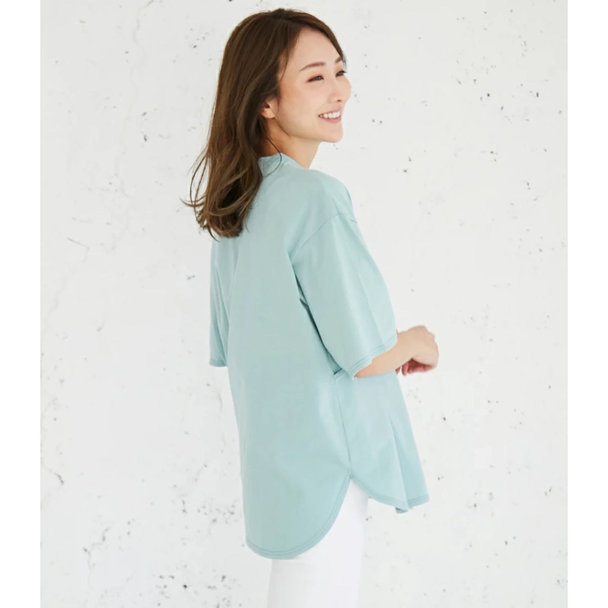 オーバーサイズのシンプルなTシャツは女性らしさにこだわったデザイン。