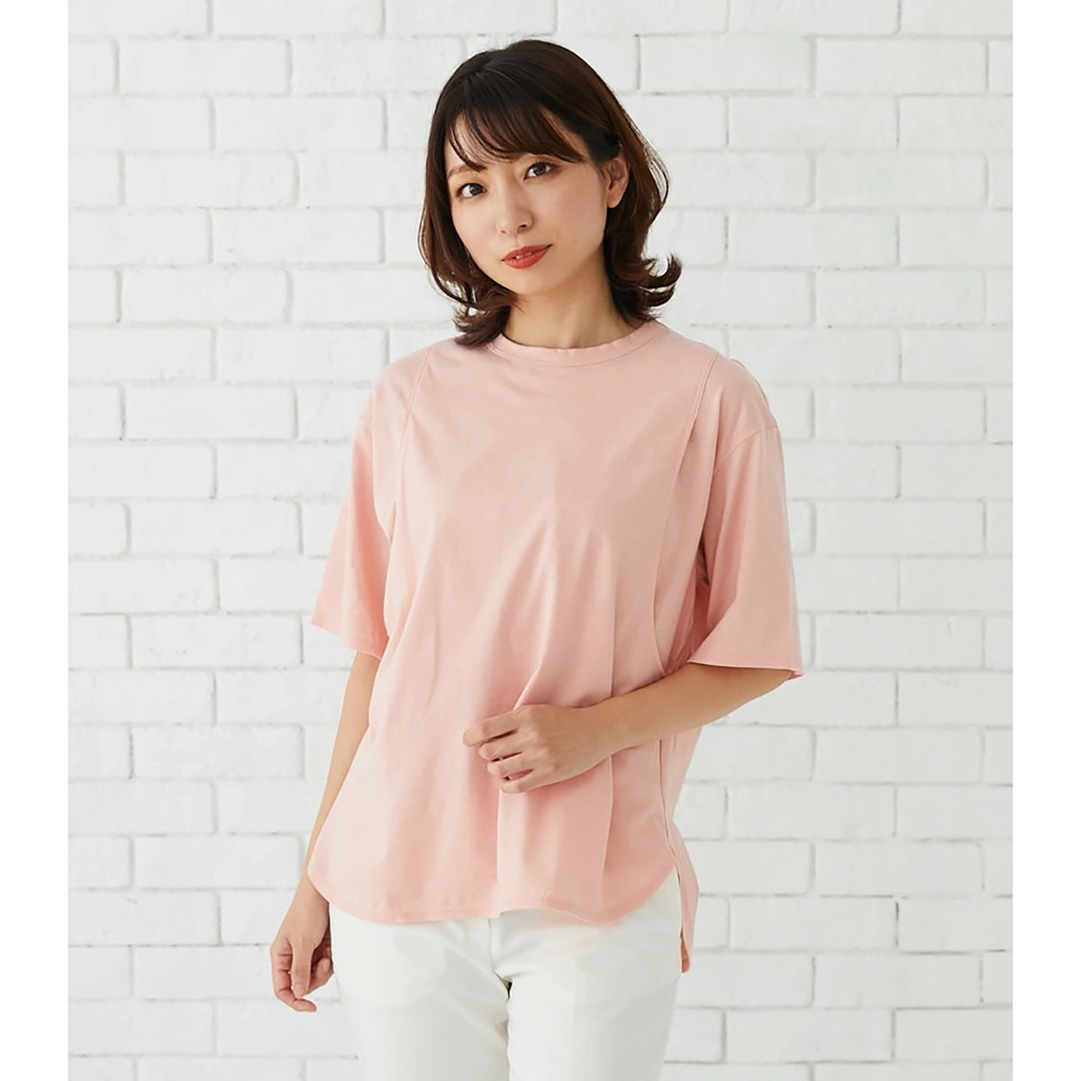 オーバーサイズのシンプルなTシャツは女性らしさにこだわったデザイン。