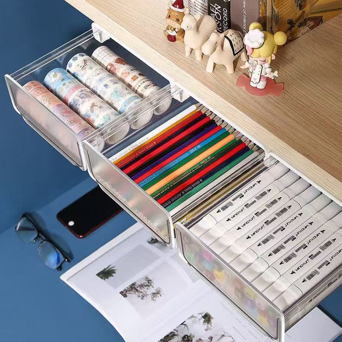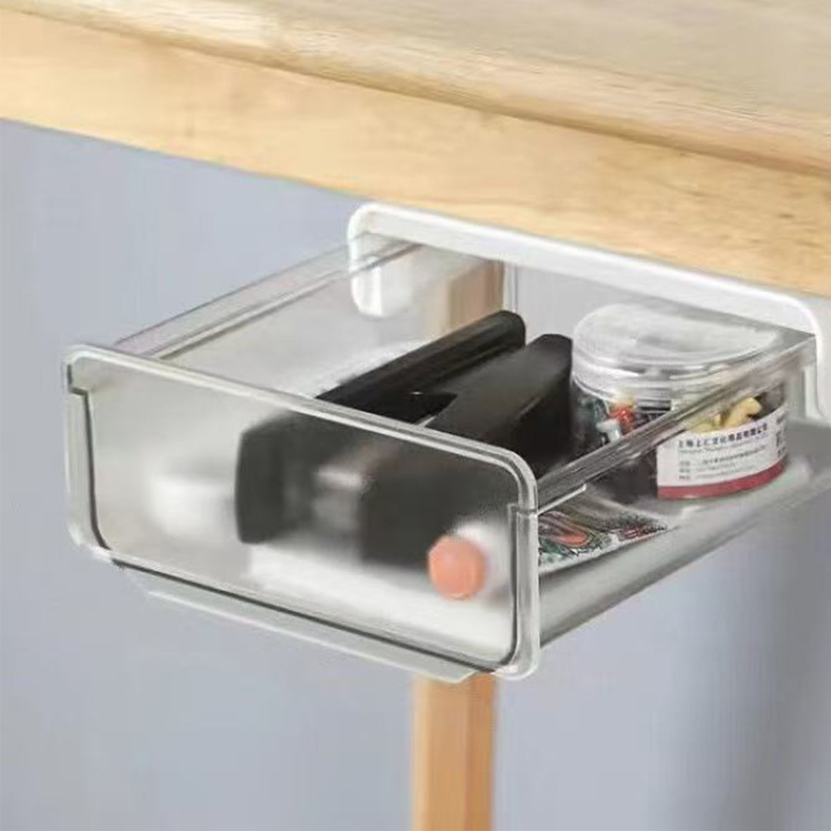 デスク周りがスッキリ!散らかりがちな小物をまとめて収納できるデスク下収納ボックス。