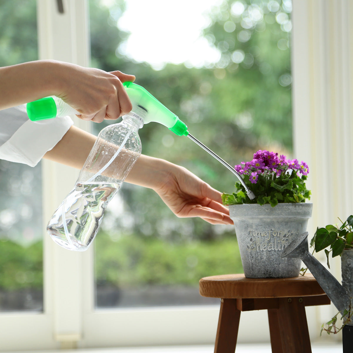 ペットボトル専用加圧式スプレーノズル ロングノズル付は、周りに水が飛び散らず根元からの水やりに最適なスプレーノズルです。