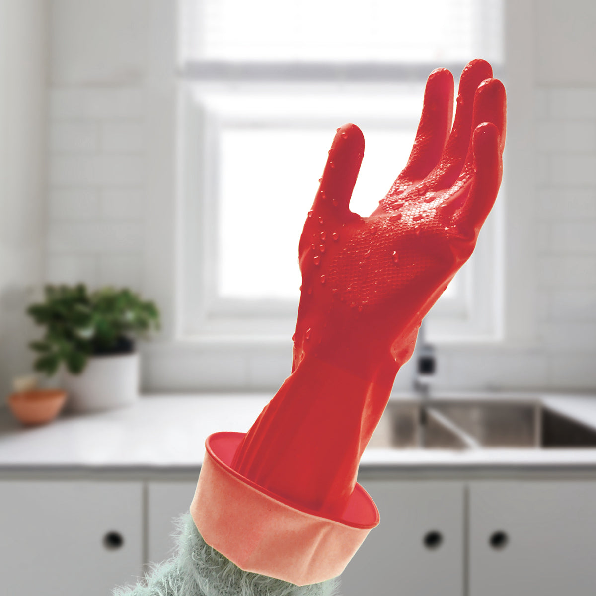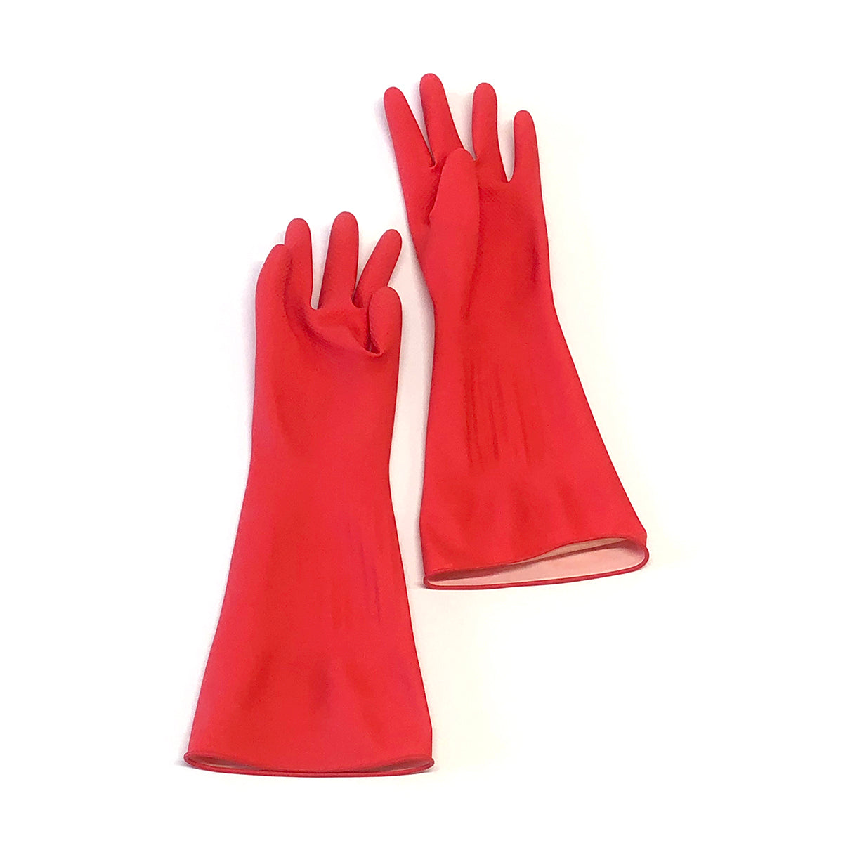 水だれを防ぐゴム手袋DripStopy 1双 レッドは、フチを折り返して水だれ防止するゴム手袋です。