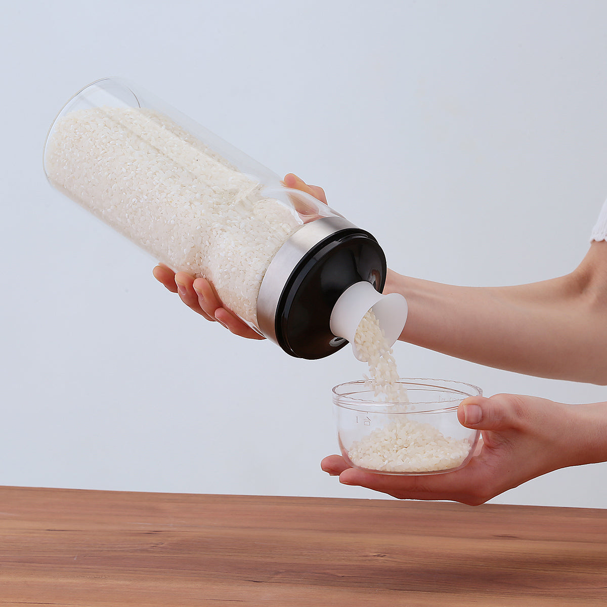 Felio 計れるキャップ付ライスキープボトルは、お米の保存に最適な計量キャップ付きのキープボトルです。