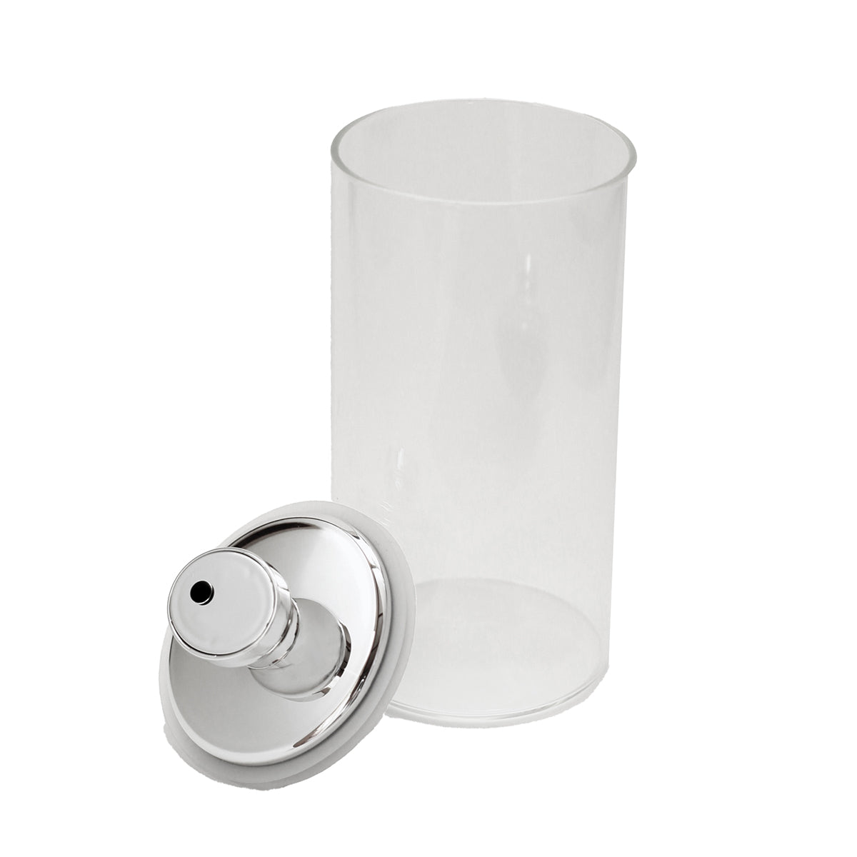 容器:ガラス、上蓋:ABS樹脂(メッキ塗装)・シリコン |