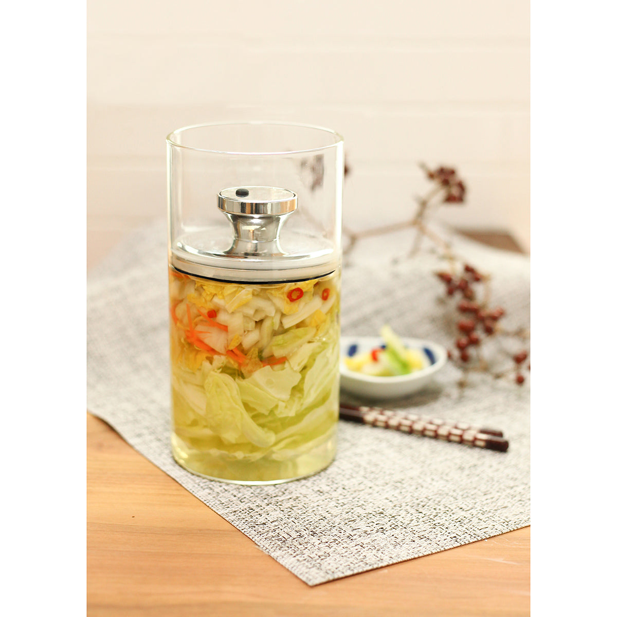 Felio エアリデューサースリムは、空気弁を開けてシューっと下に押すだけで密閉ができる保存容器です。