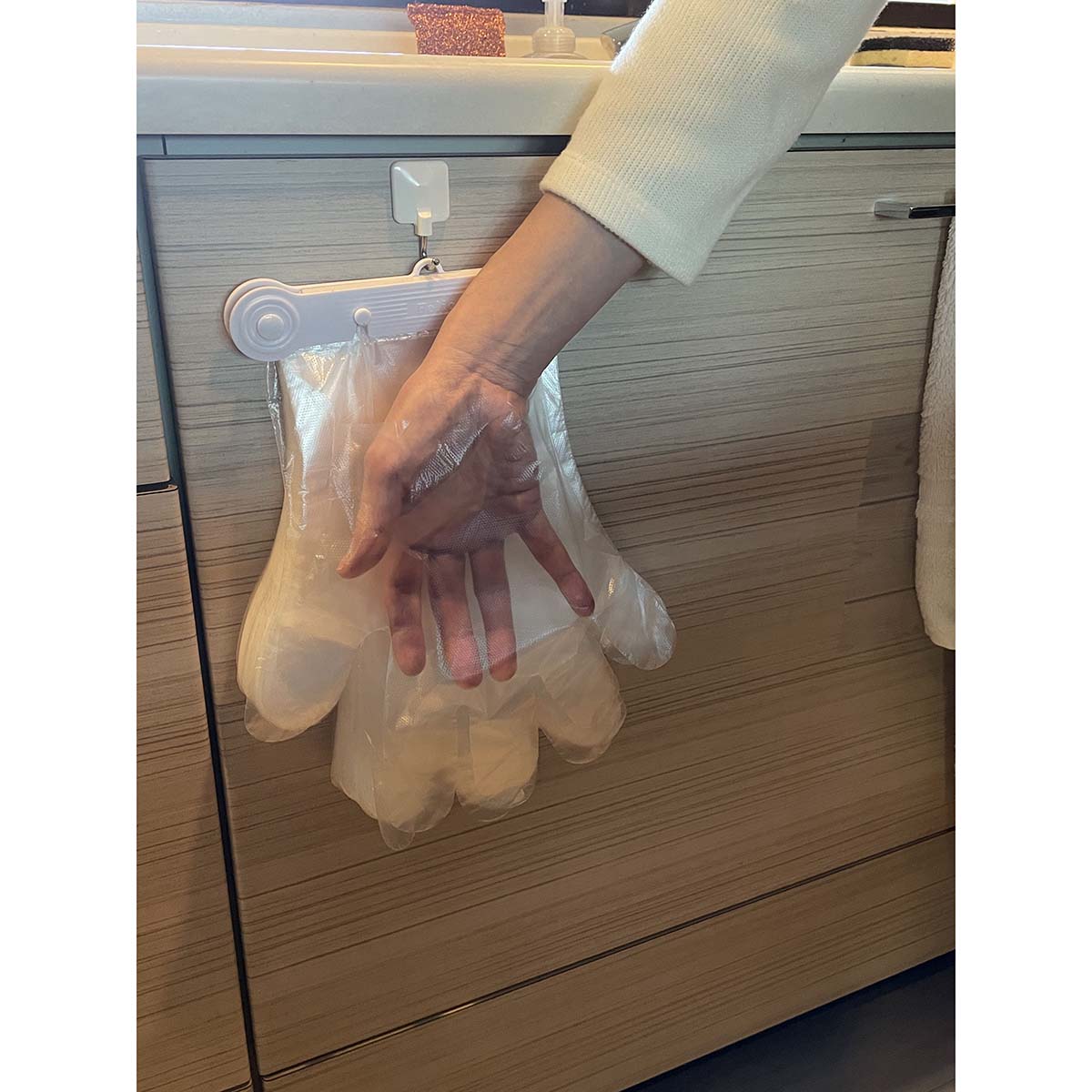 煩わしい使い捨て手袋のイライラを解消する専用クリップ付きです。