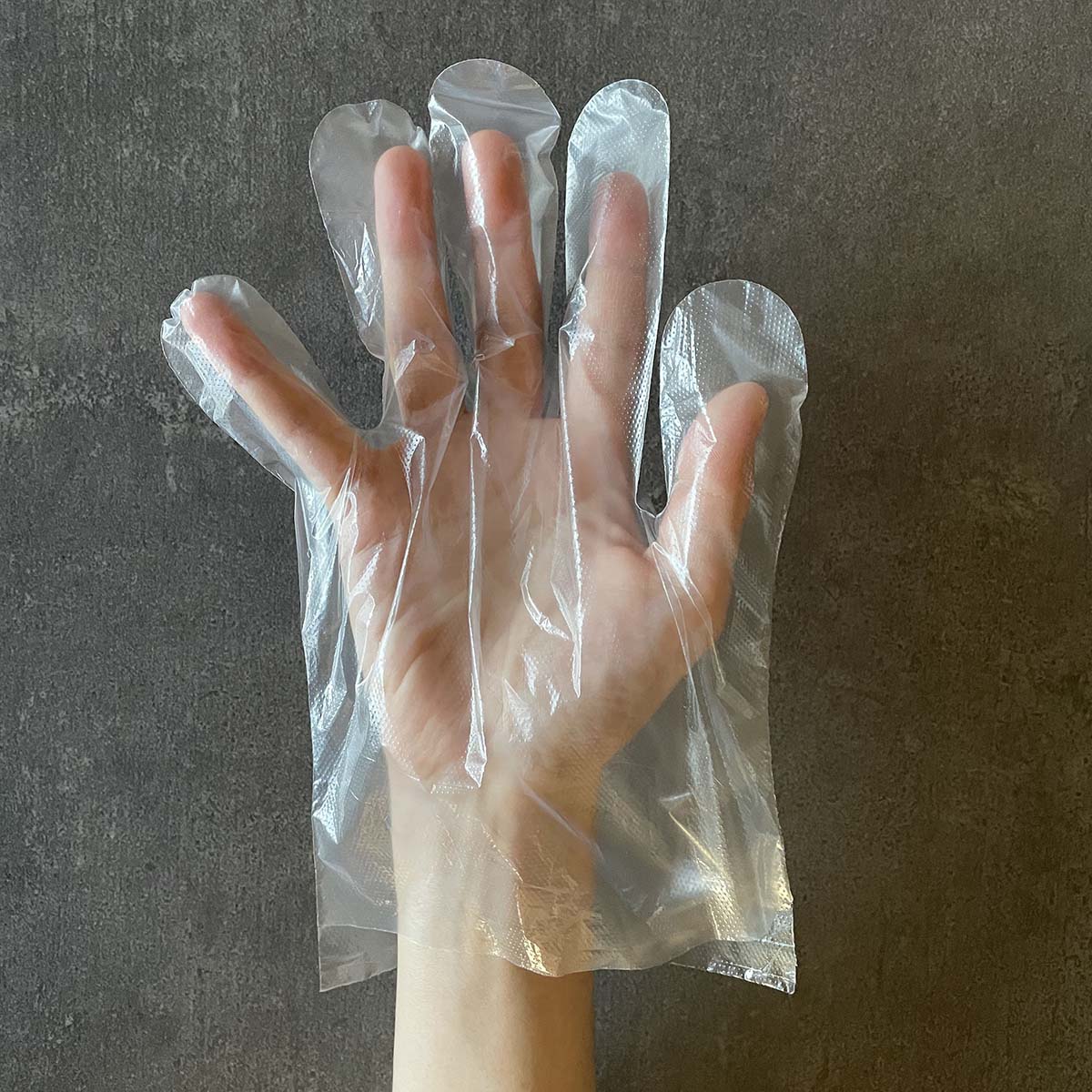 Felio ワンタッチ ポリエチ手袋 100枚は、手を入れてカットするだけ簡単装着の手袋です。