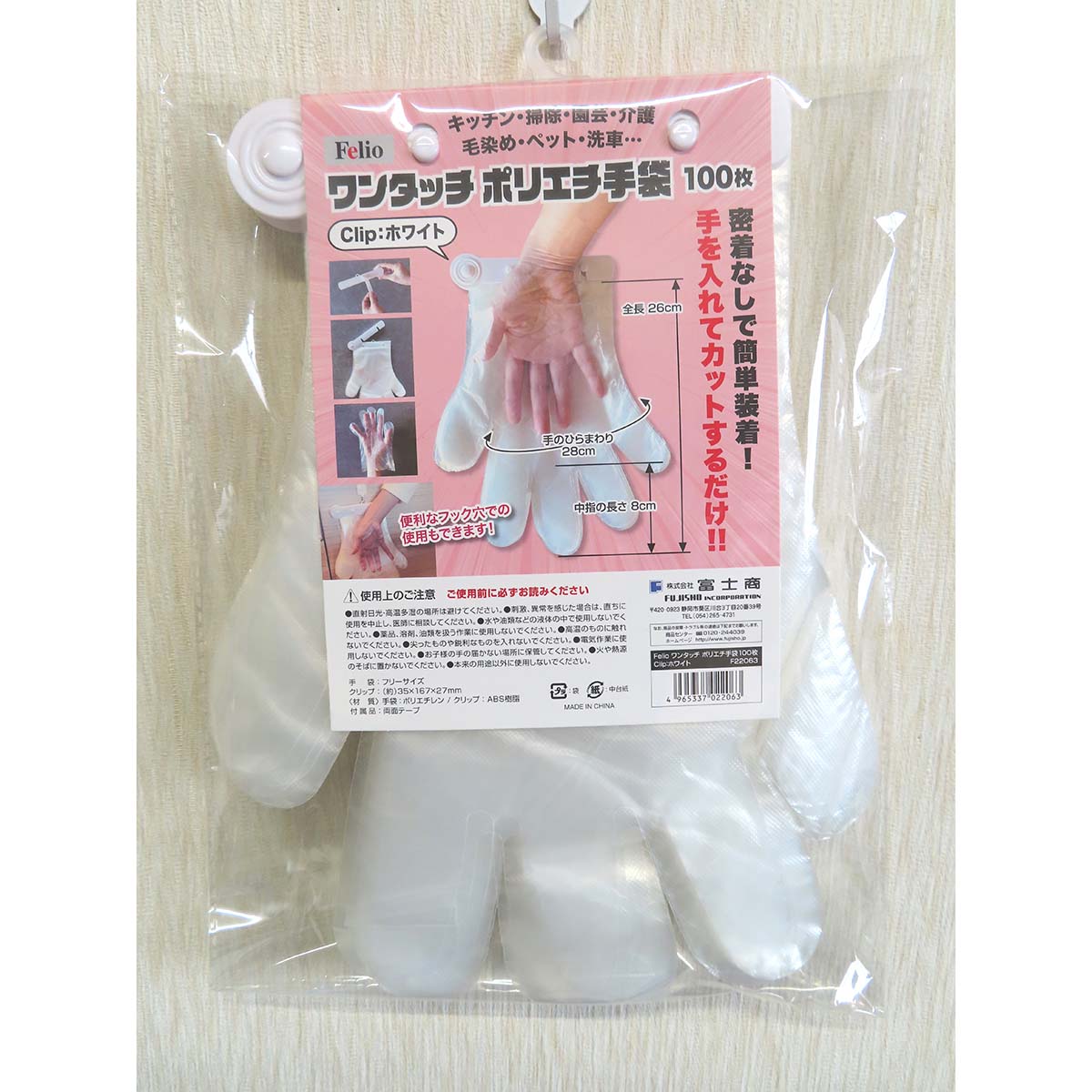 Felio ワンタッチ ポリエチ手袋 100枚 ホワイト(クリップ)