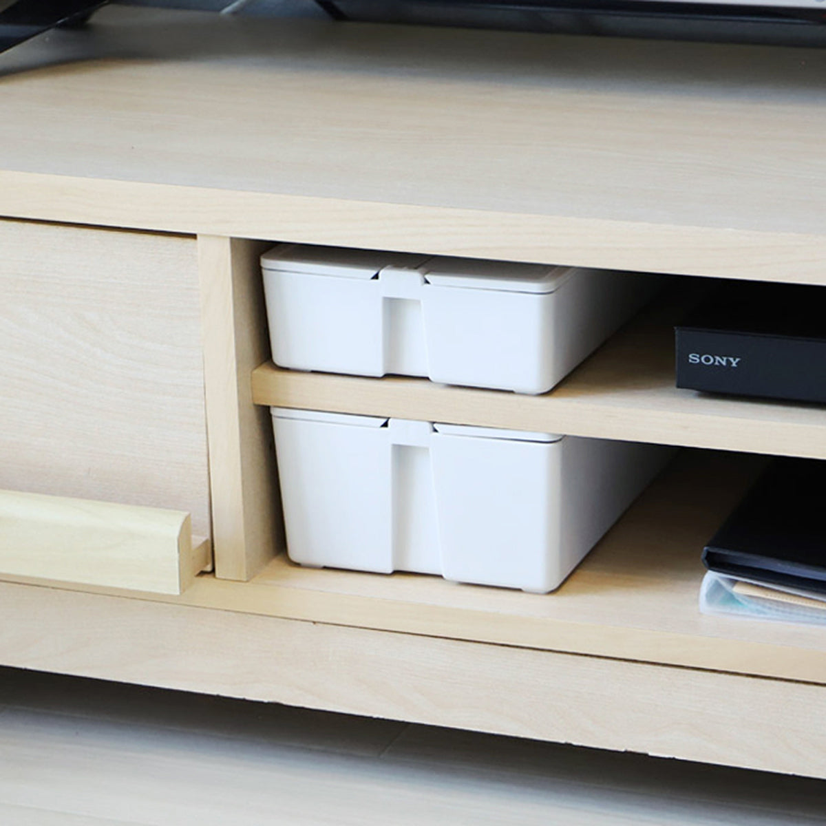 かるコン 収納ケース ホワイトは、グッドデザイン受賞したフタが持ち手になる収納ボックスです。