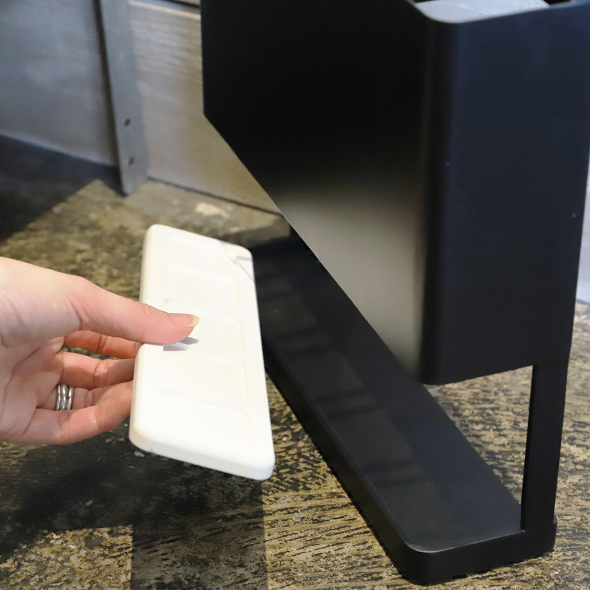 背面に施された工夫により傘をまっすぐ立てられ、折りたたみ傘もずり落ちません。