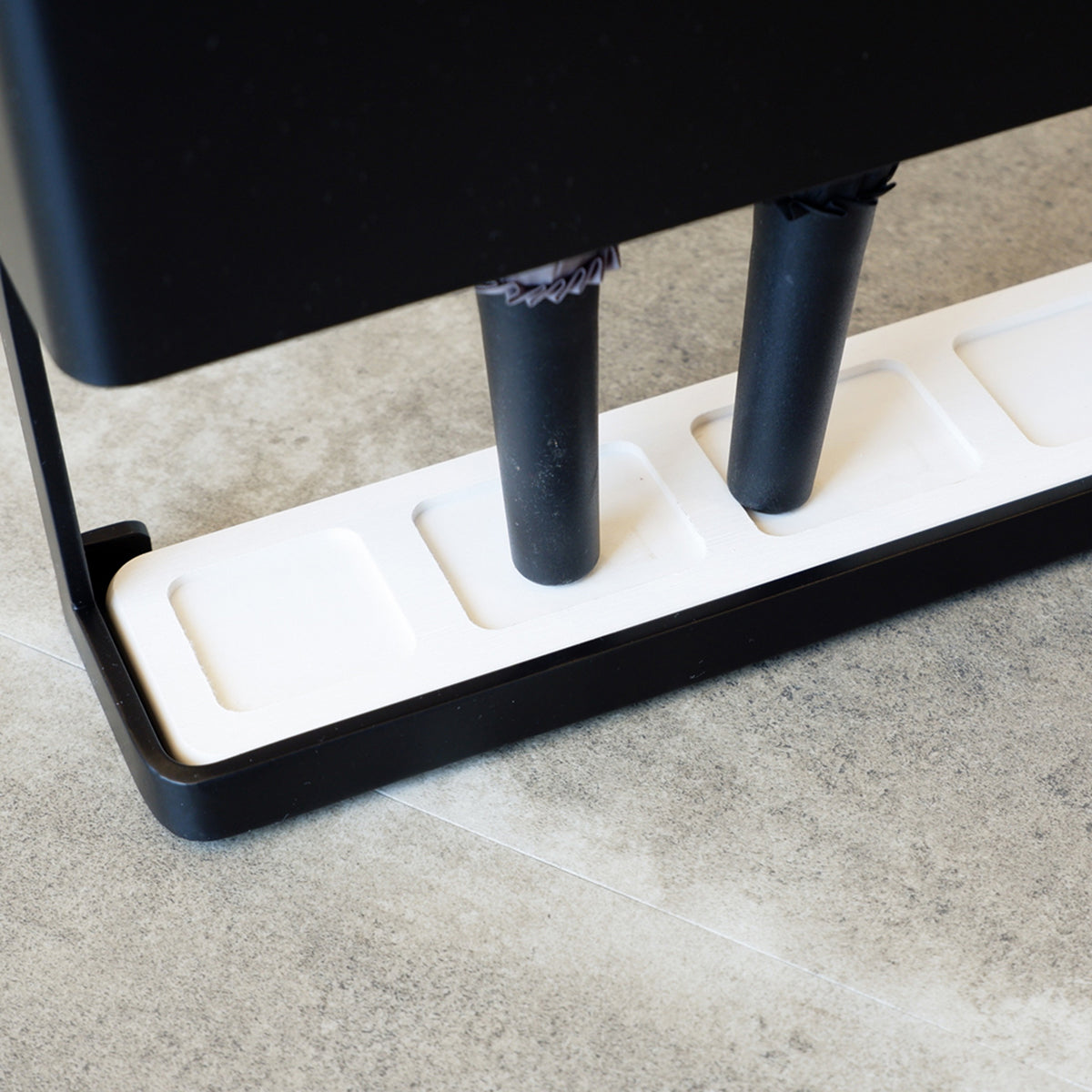 背面に施された工夫により傘をまっすぐ立てられ、折りたたみ傘もずり落ちません。