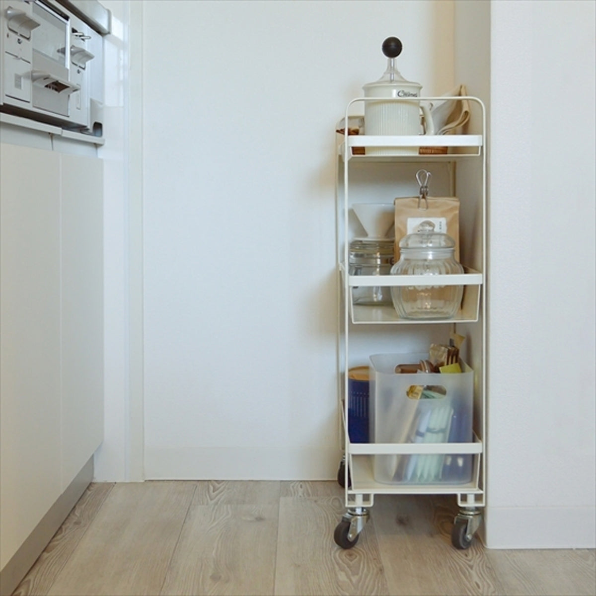 ストレージワゴンは、キッチン・リビング・サニタリーなどあらゆる場面で活躍する、幅21cmのスリムなワゴンです。