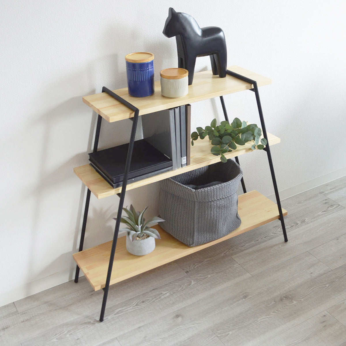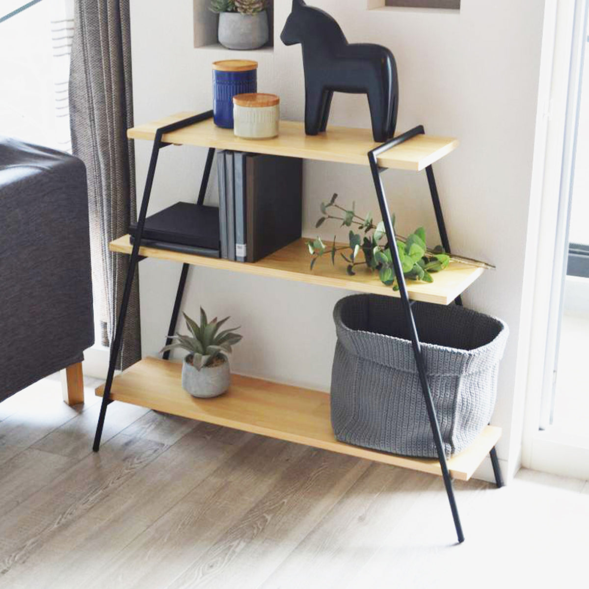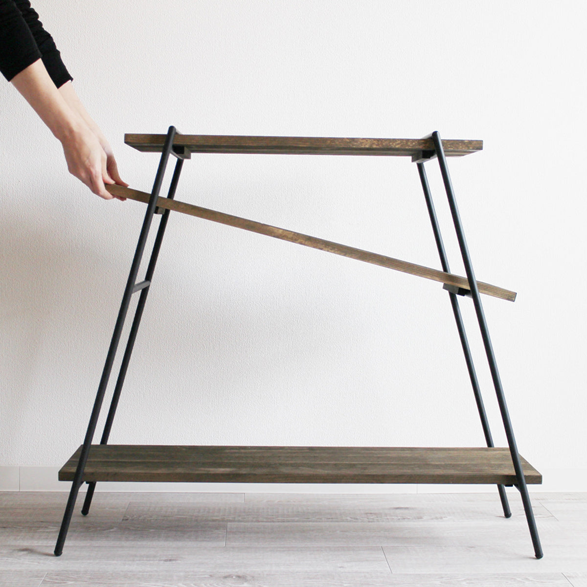アイアンレッグラックは、アイアンの脚に木板をセットするシンプル構造のラックです。