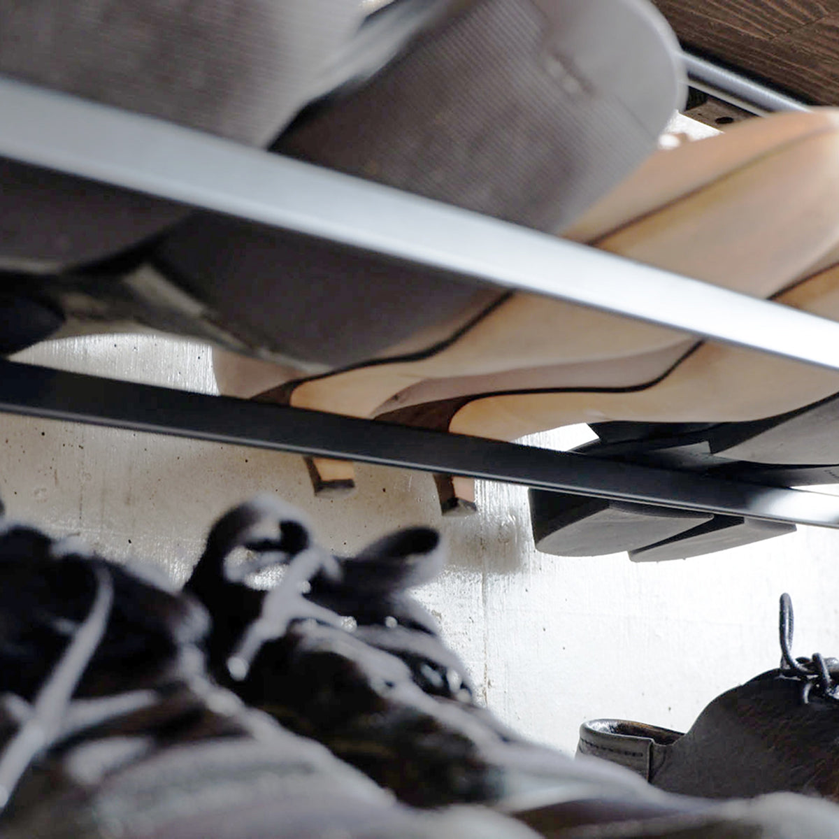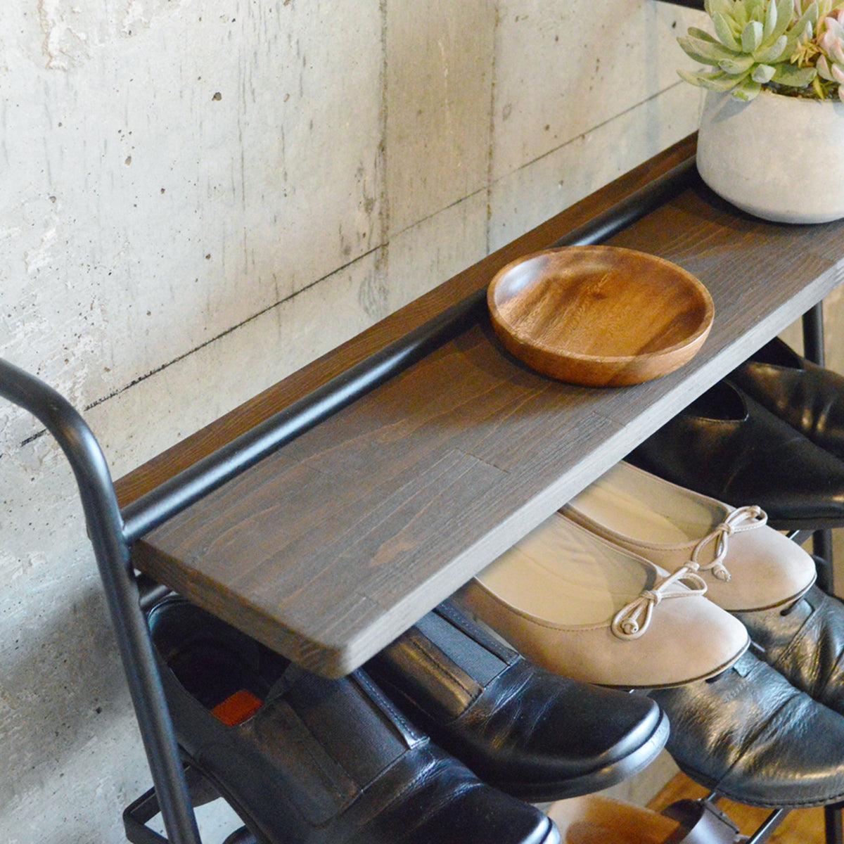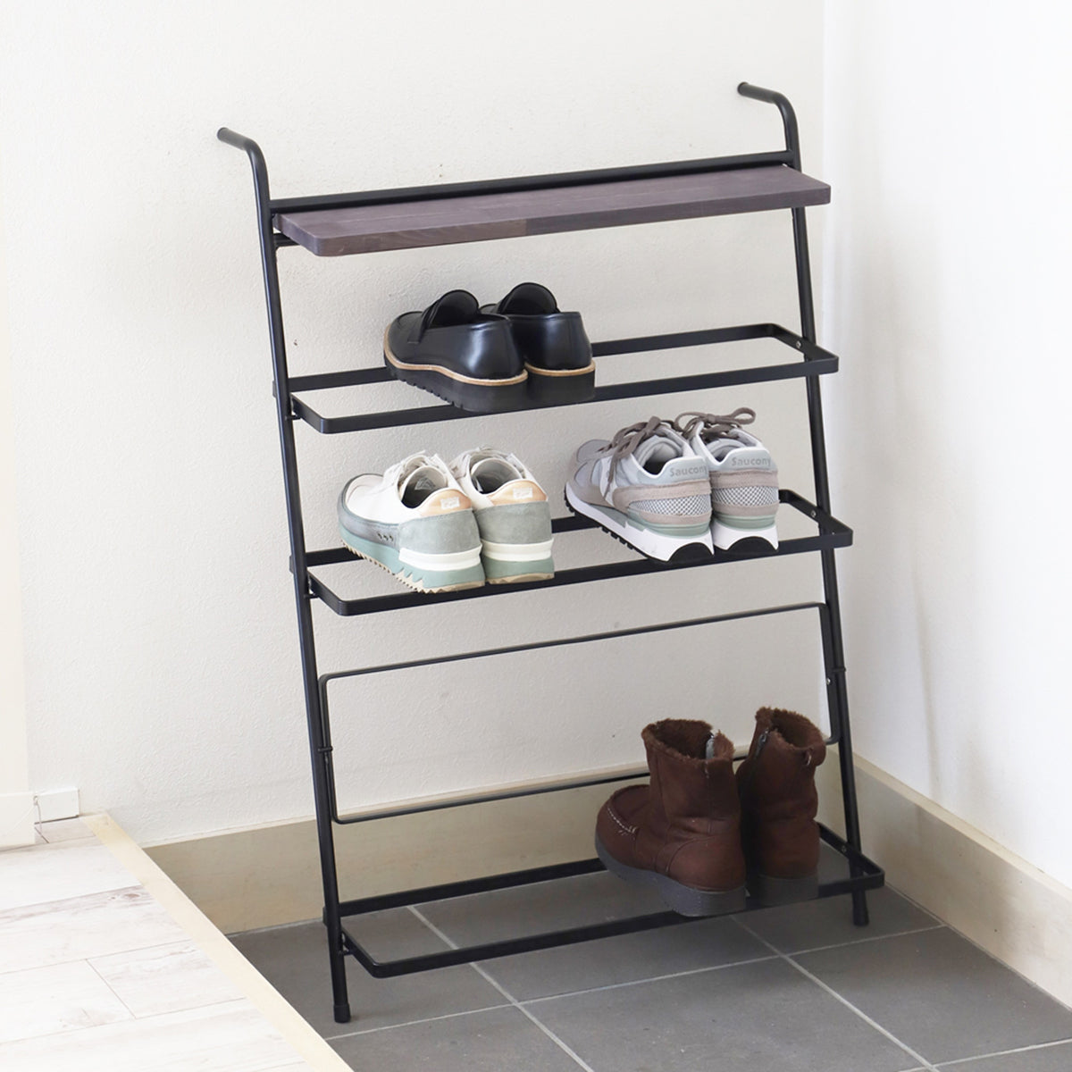 アイアンシューズラックは、立て掛けるだけで靴の収納スペースを増やすことができるシューズラックです。