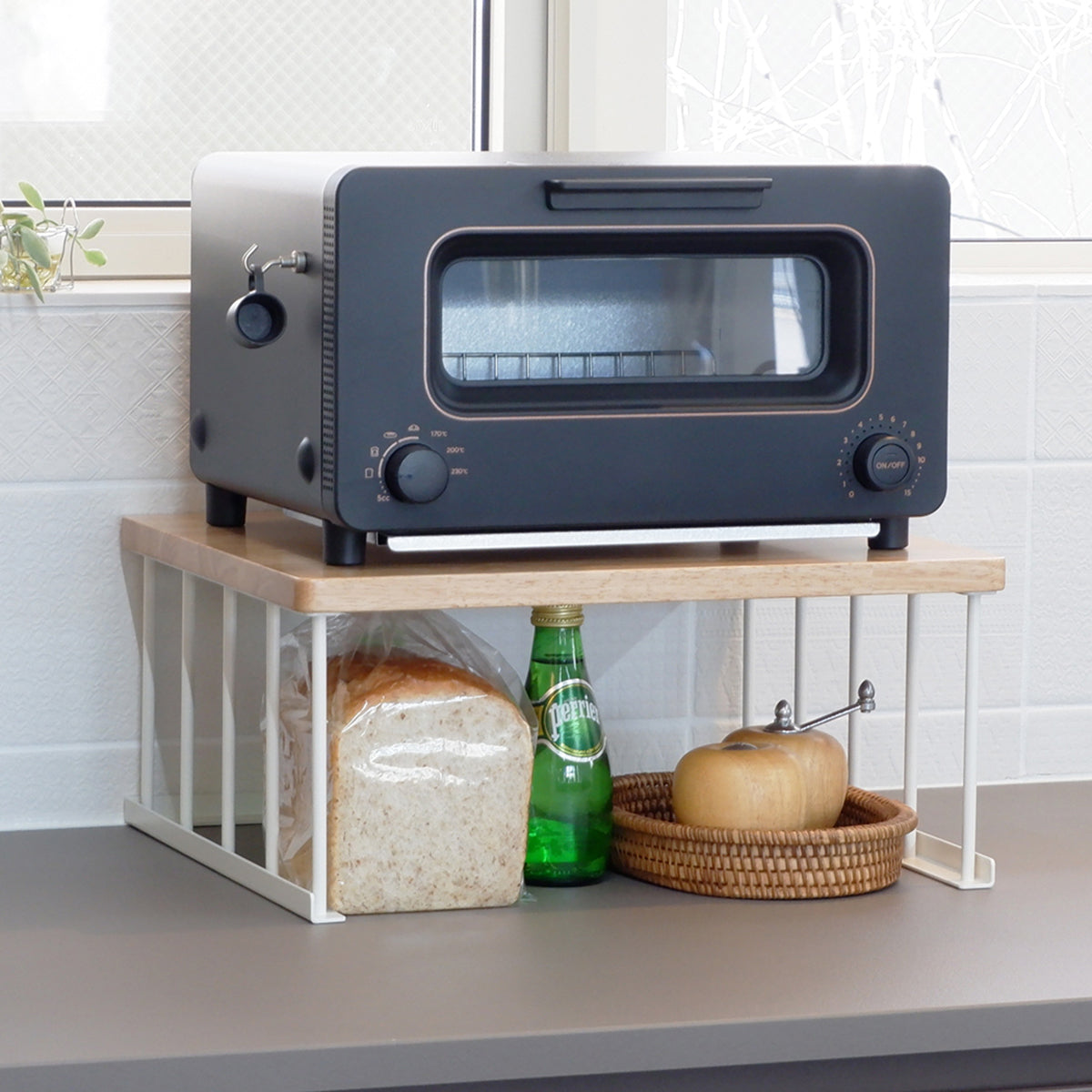 ラックの下にはラップやキャニスター、パンなどを入れておくことができます。