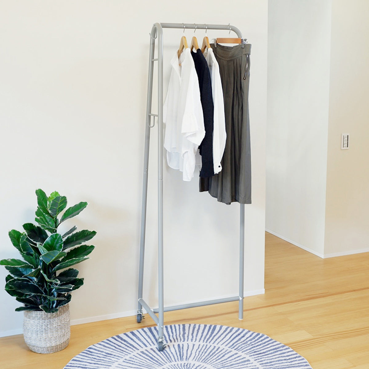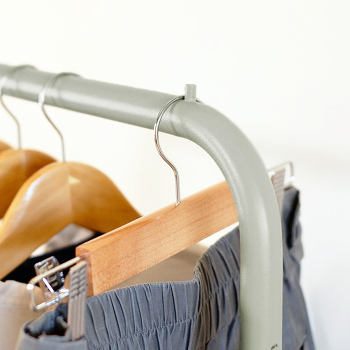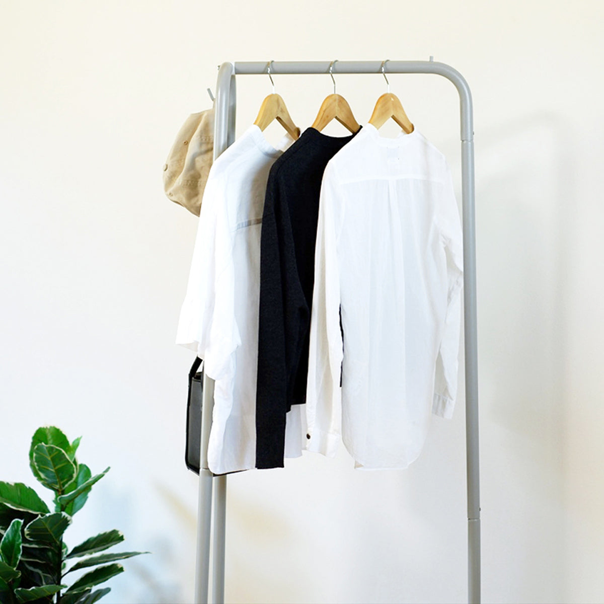 アイアンハンガーラック スリムは、サイドに付いたスタイリングスペースでコーディネートが作れるアイアン製ハンガーラックです。