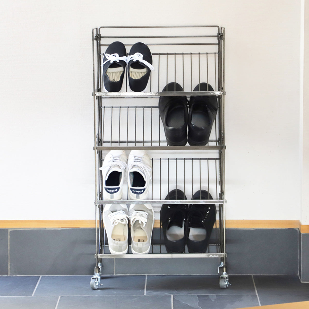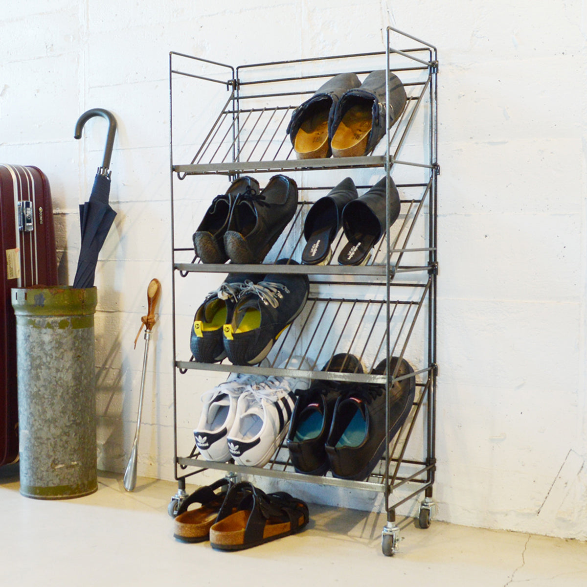 ワイヤーシューズラックは、玄関のインテリアを印象づけるインダストリアルなワイヤーシューズラックです。