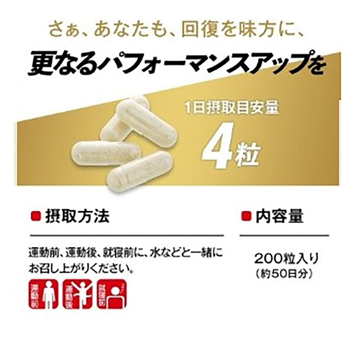 トレーニングした日の就寝前に4粒飲むだけで簡単です。