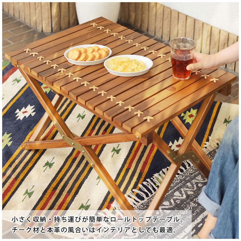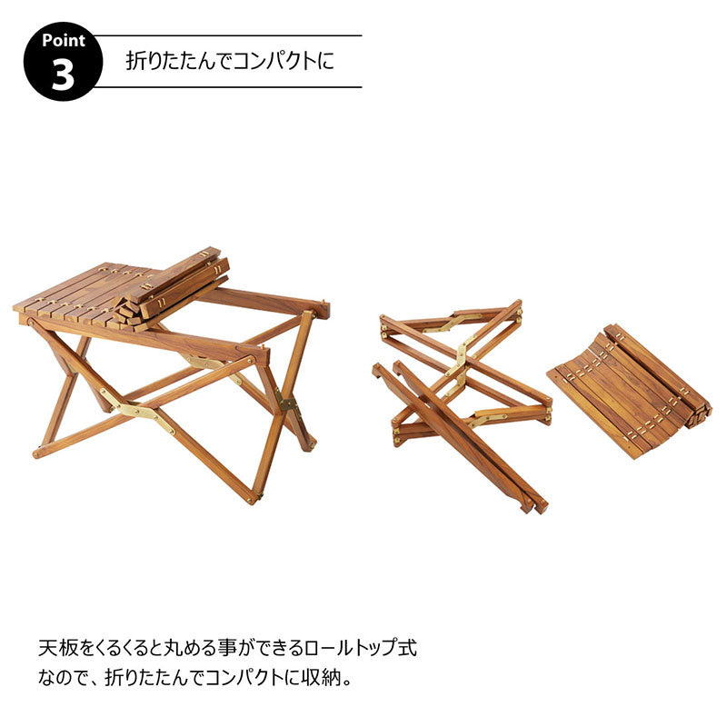 小さく収納・持ち運びが簡単なロールトップテーブル。