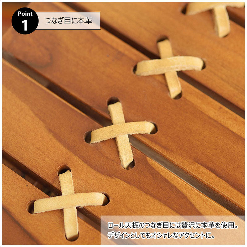 ロール天板のつなぎ目には贅沢に本革を使用。