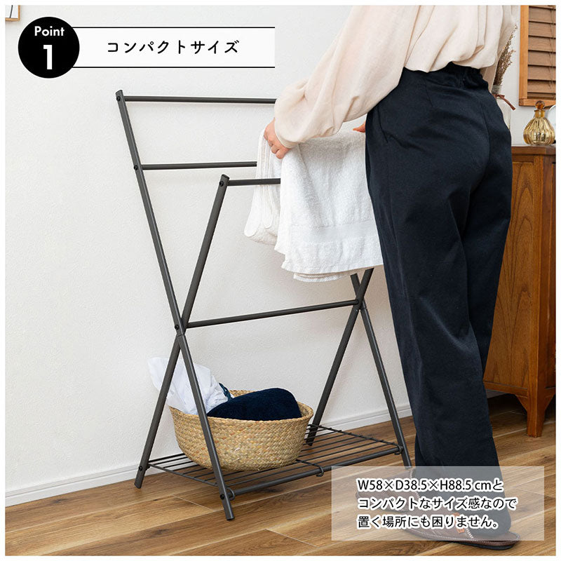 コンパクトサイズで場所を取らず、すっきり置けるフォールディングハンガー。