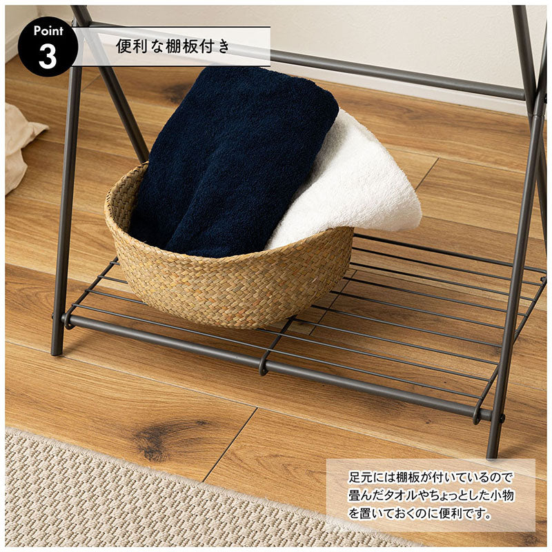 足元には棚が付いているので畳んだタオルやちょっとした小物を置いておくのに便利。
