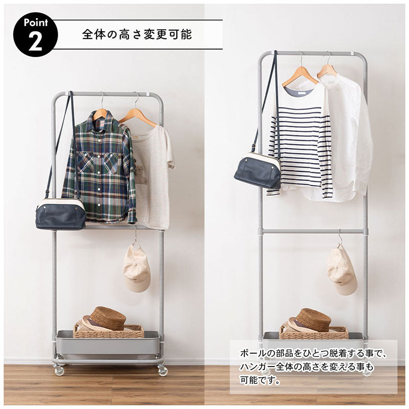 中間ハンガーやBOXの高さを変更出来るので、使いやすい形に変えて使用可能。