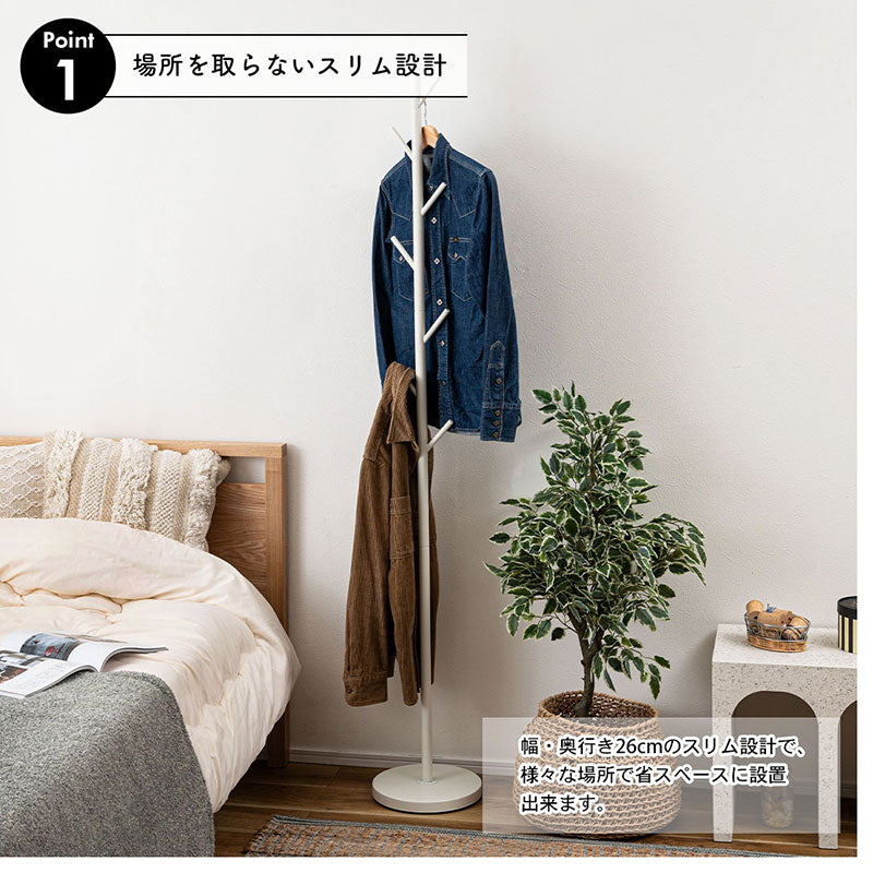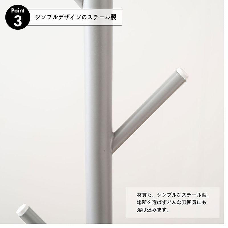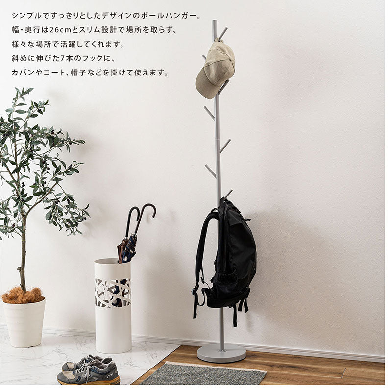 斜めに伸びた7本のフックに、カバンやコート、帽子などを掛けて使えます。
