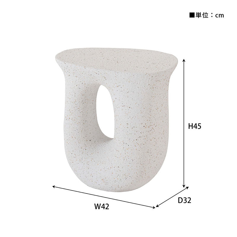 ざらりとした石のような質感とユニークな形が特徴のサイドテーブル。