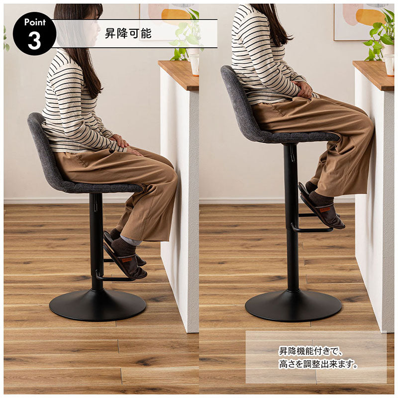 座面は回転式で昇降可能な、機能性も優れたアイテム。