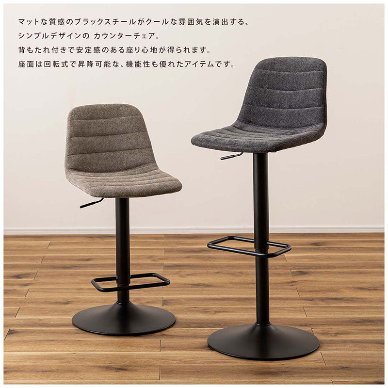 マットな質感のブラックスチールがクールな雰囲気を演出する、シンプルデザインのカウンターチェア。