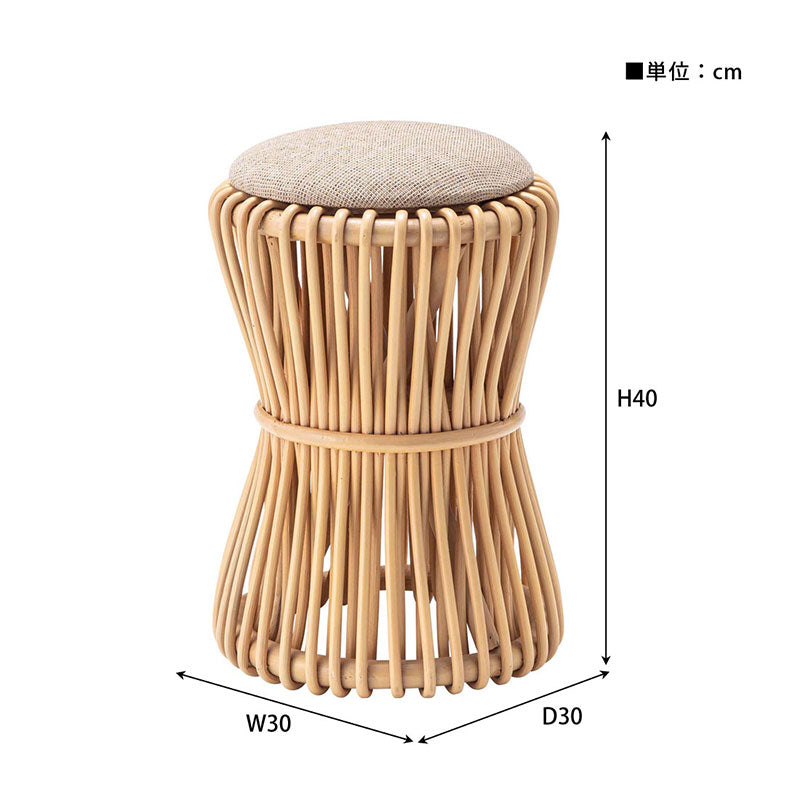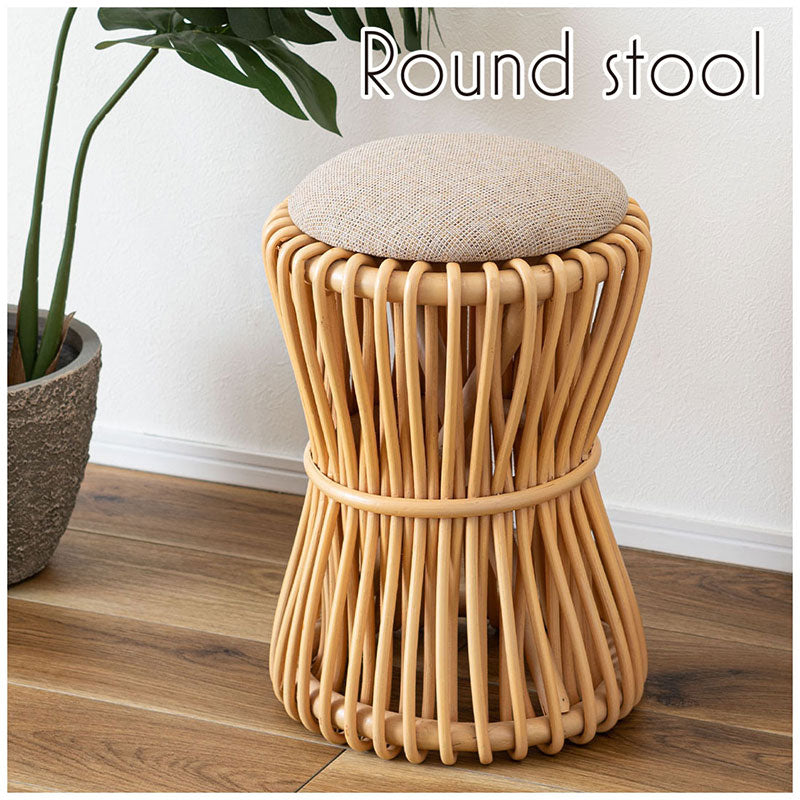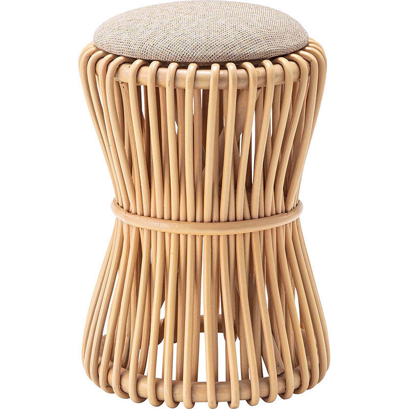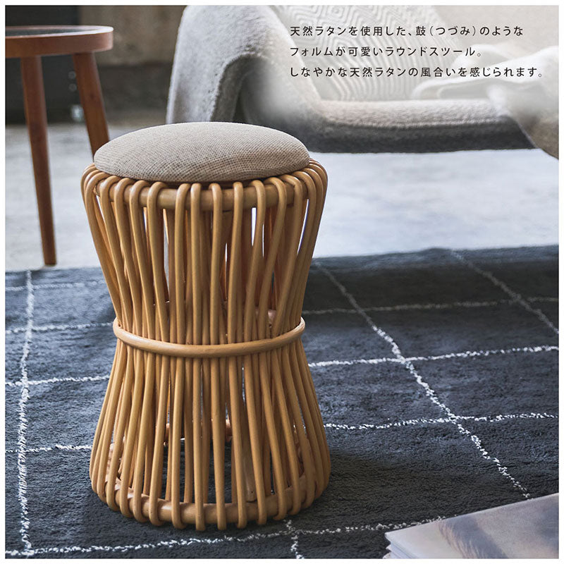 天然ラタンを使用した、鼓(つづみ)のようなフォルムが可愛いラウンドスツール。