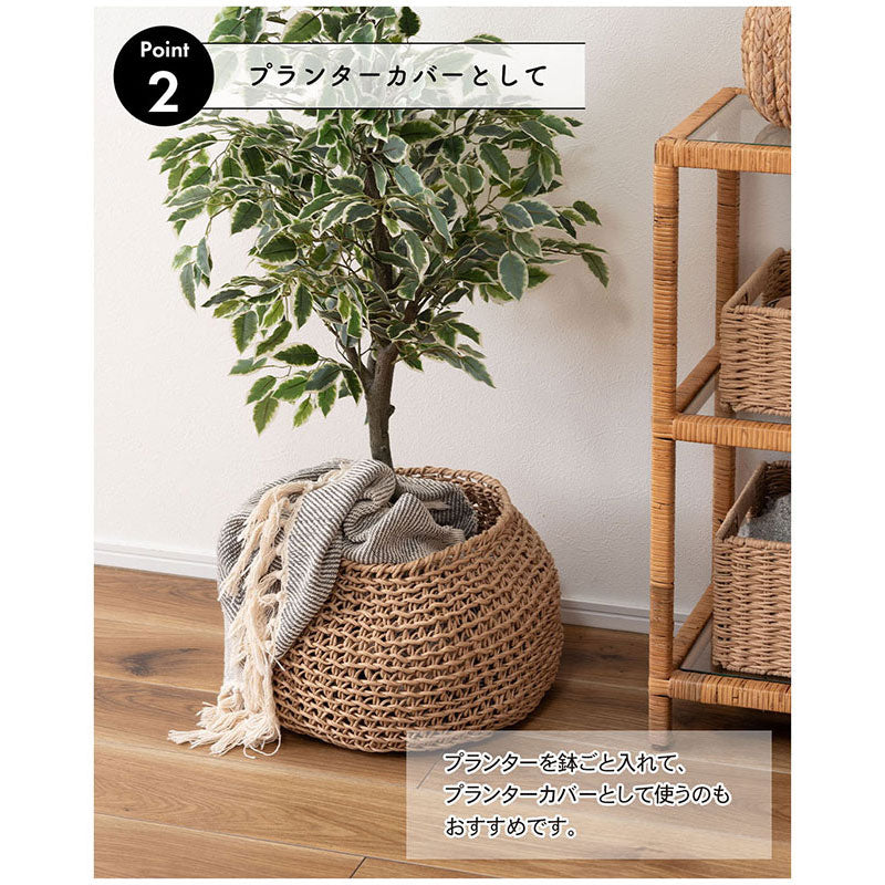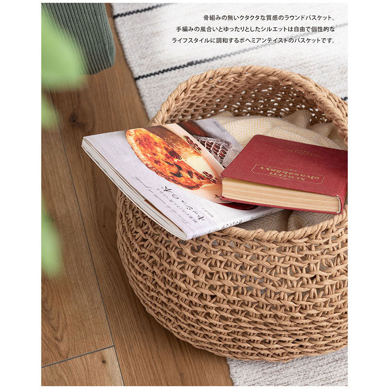 手編みの風合いとゆったりとしたシルエットは自由で個性的なライフスタイルに調和する、ボヘミアンテイストのバスケット。