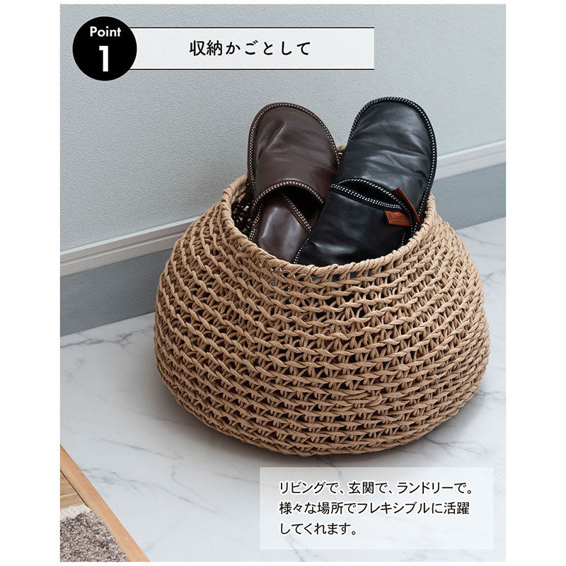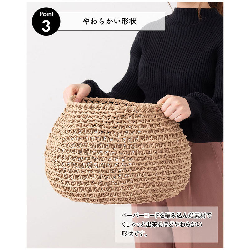 ペーパーコードを編み込んだ素材でくしゃっと出来るほどやわらかい形状。