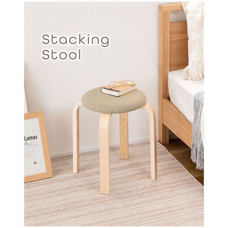 天然木とニュアンスカラーの生地が魅力的なスタッキングスツール。