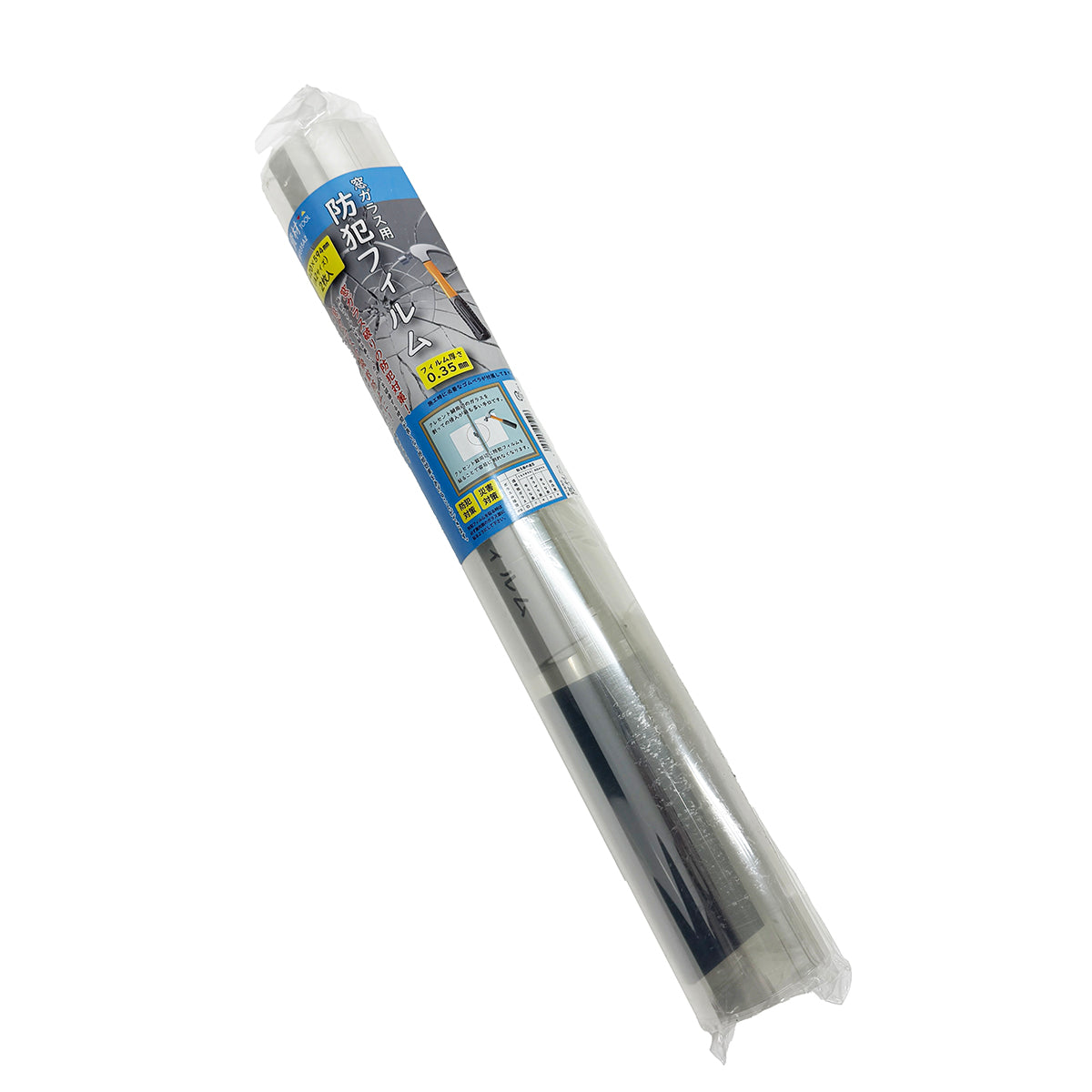 窓ガラス用 防犯フィルムは、窓ガラスを割りにくくし、ガラス破りからの侵入を防止する防犯フィルムです。