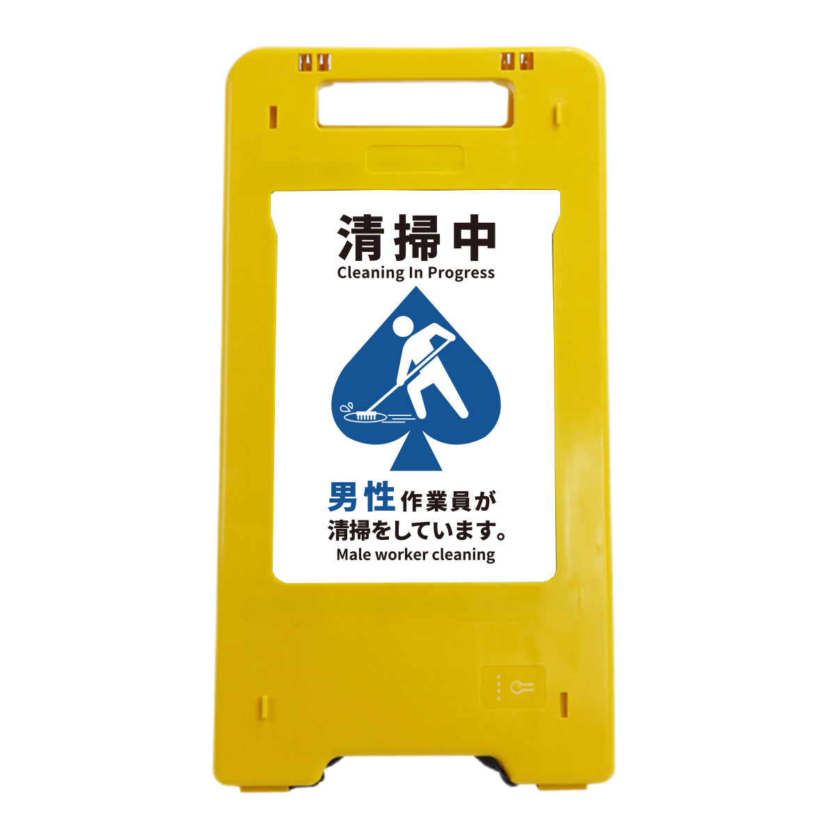 ソーラー・充電式LED サインスタンド 清掃中 男性作業員が清掃をしています。(スペード)