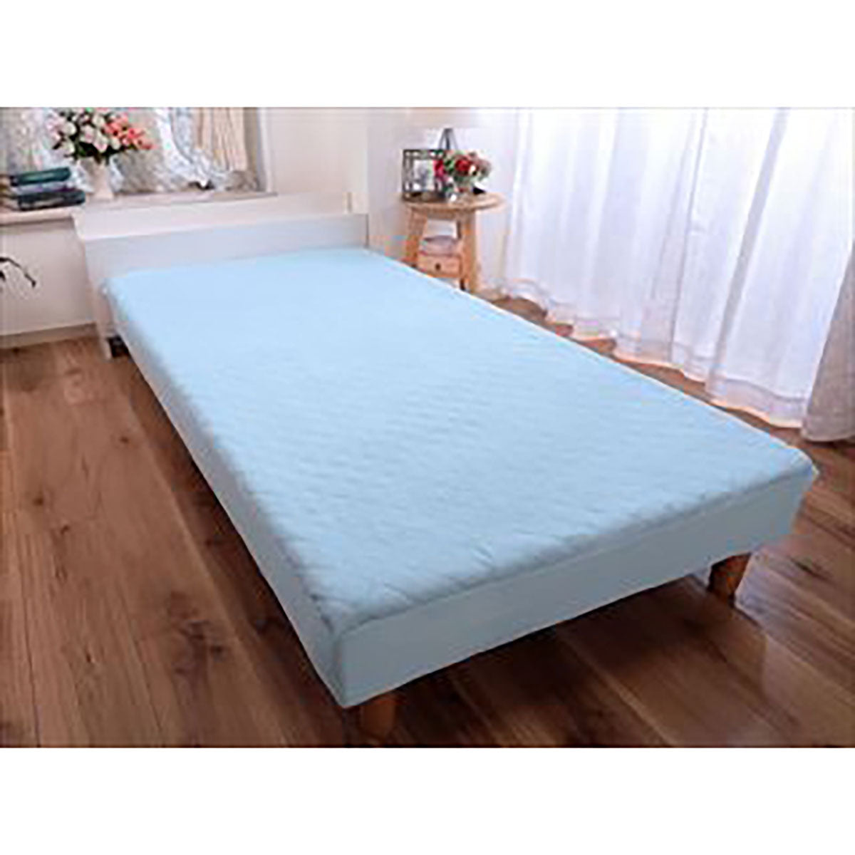 パッド一体型タオル素材ボックスシーツ ブルー シングル