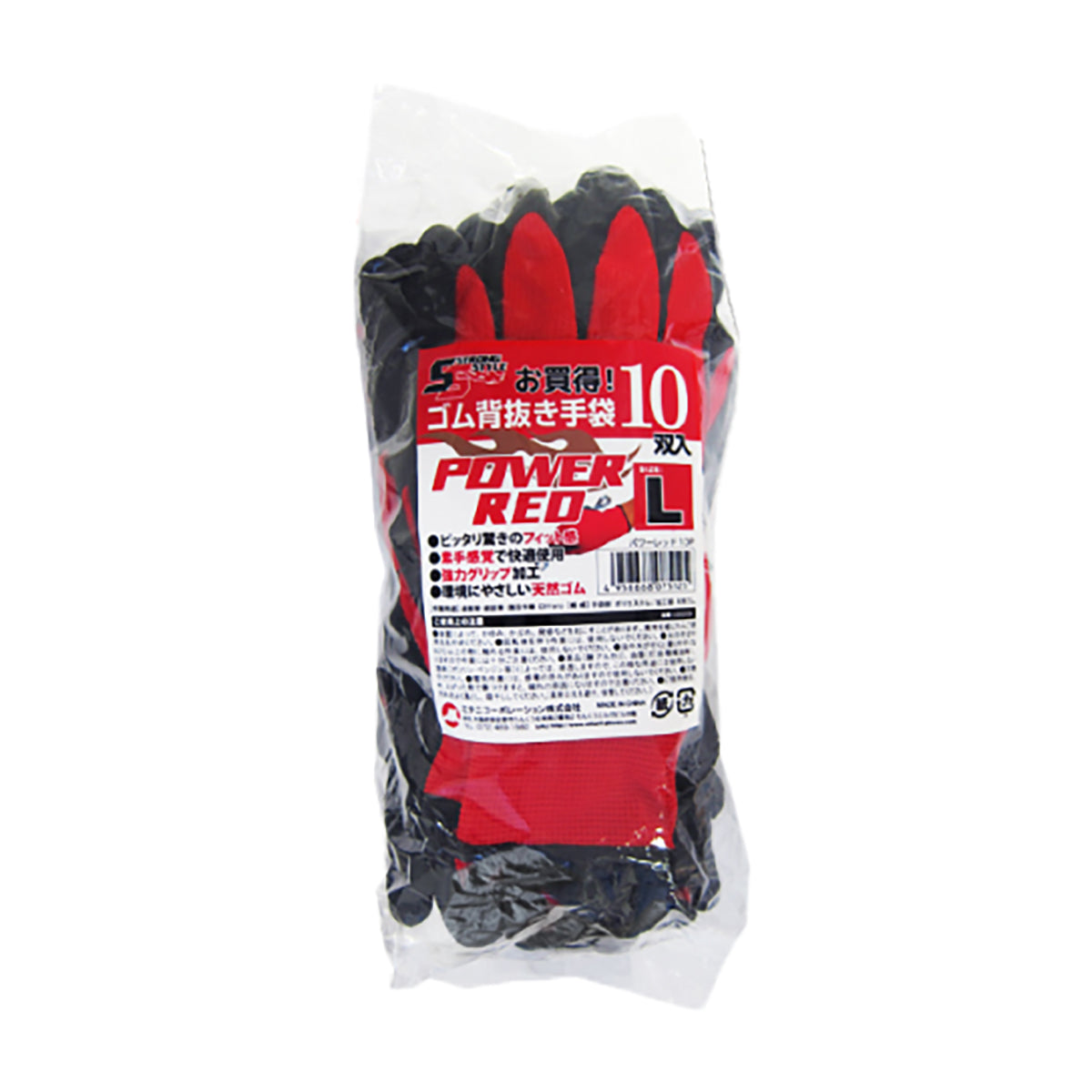 背抜き手袋パワーレッド 10双×24袋入り M/L/LL