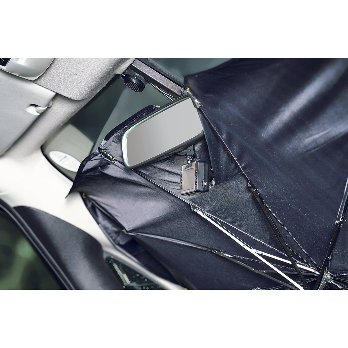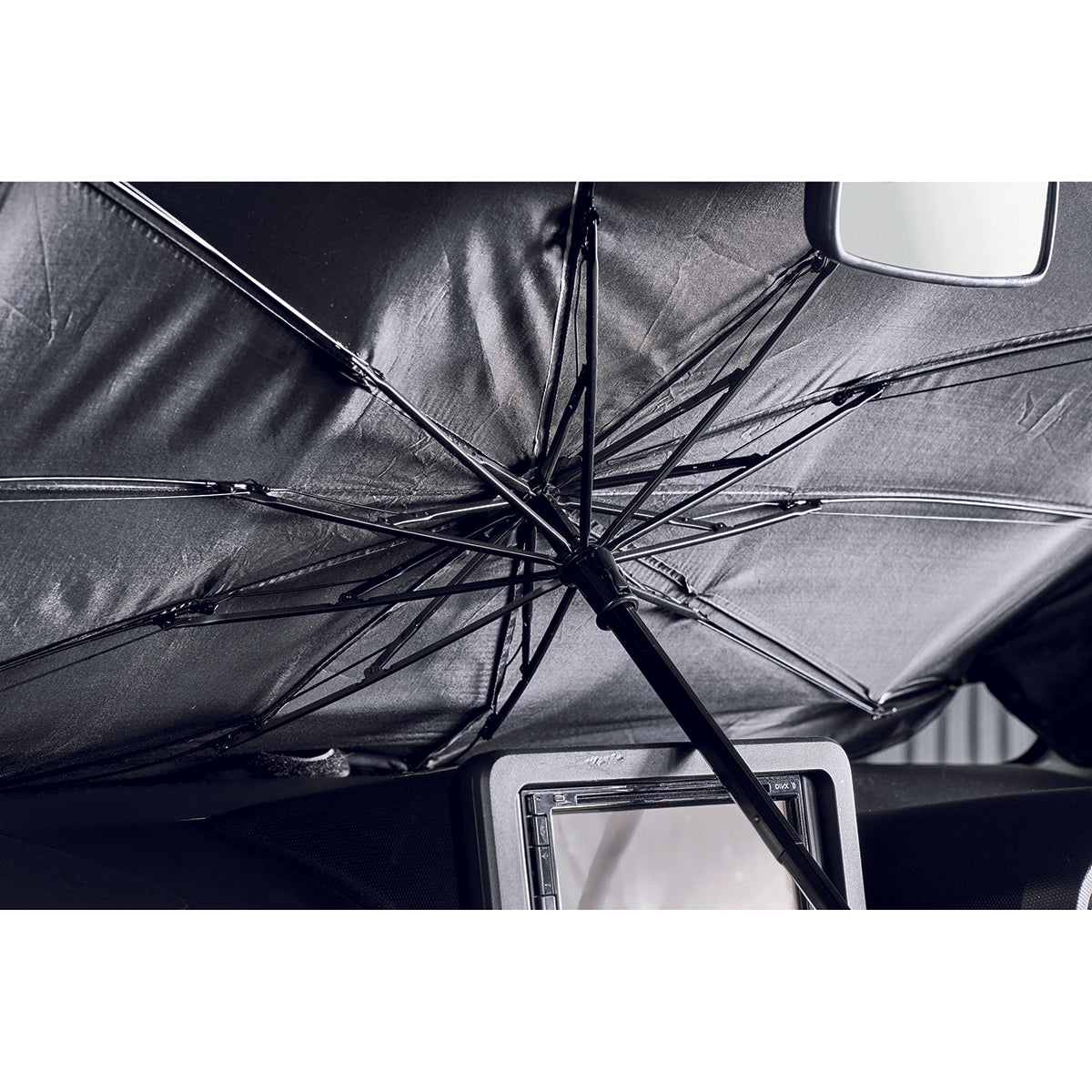 傘のように開いて簡単に設置ができるカーサンシェードです。