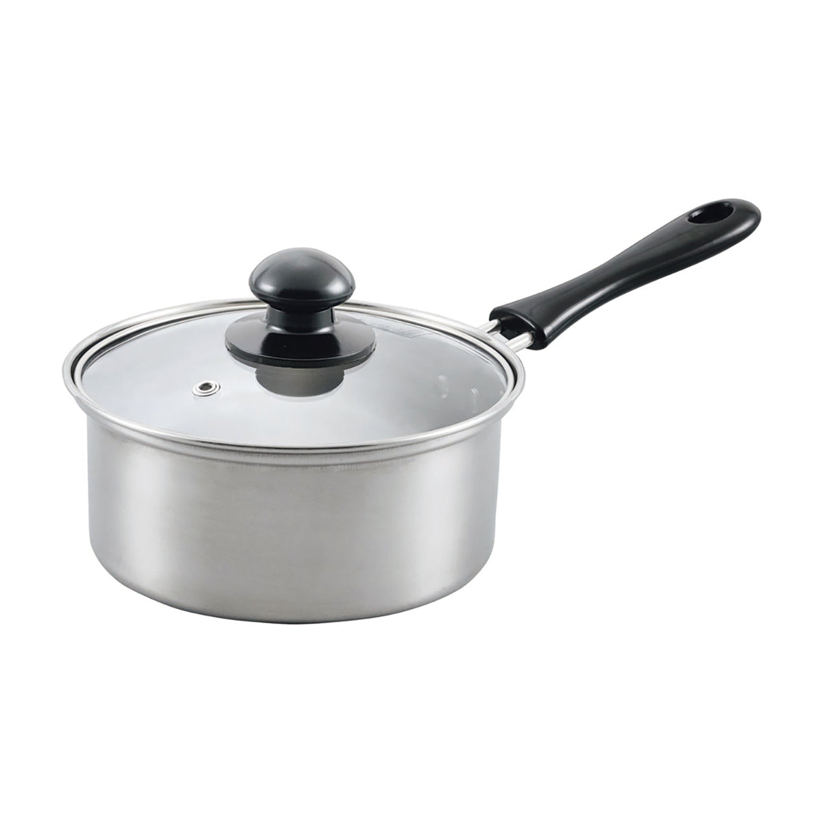 お手入れしやすくサビにくいステンレス製の片手鍋16cmです。