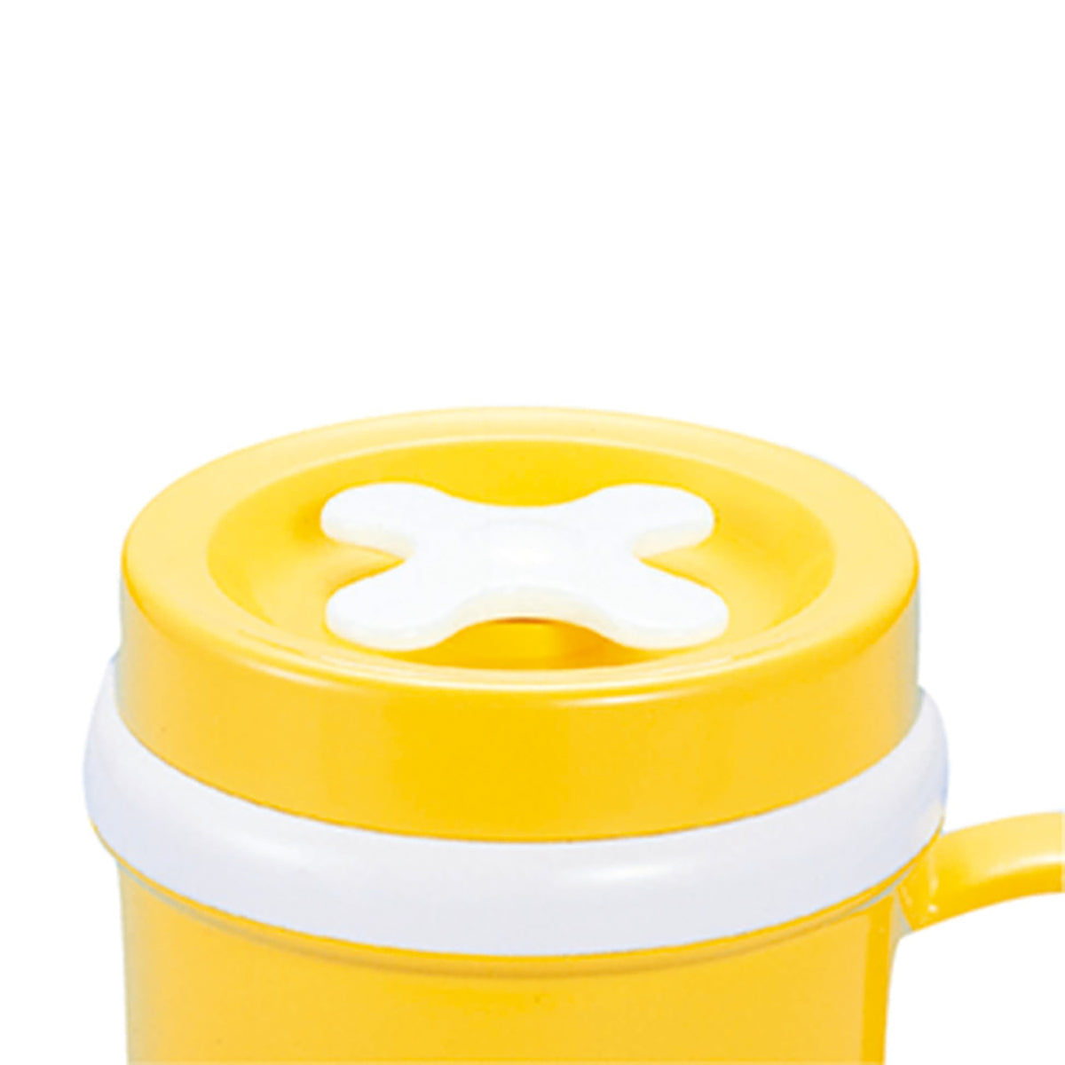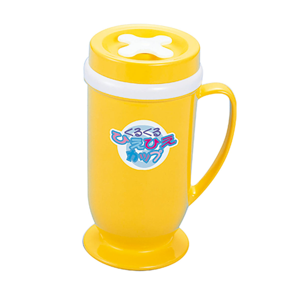 冷凍庫で冷やしたカップに好きな飲み物を入れてハンドルを回すとアラ不思議!