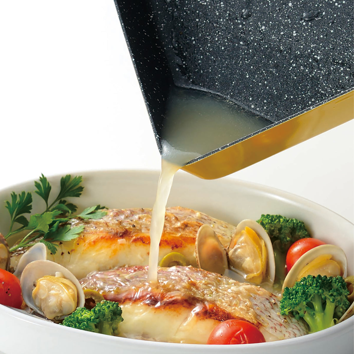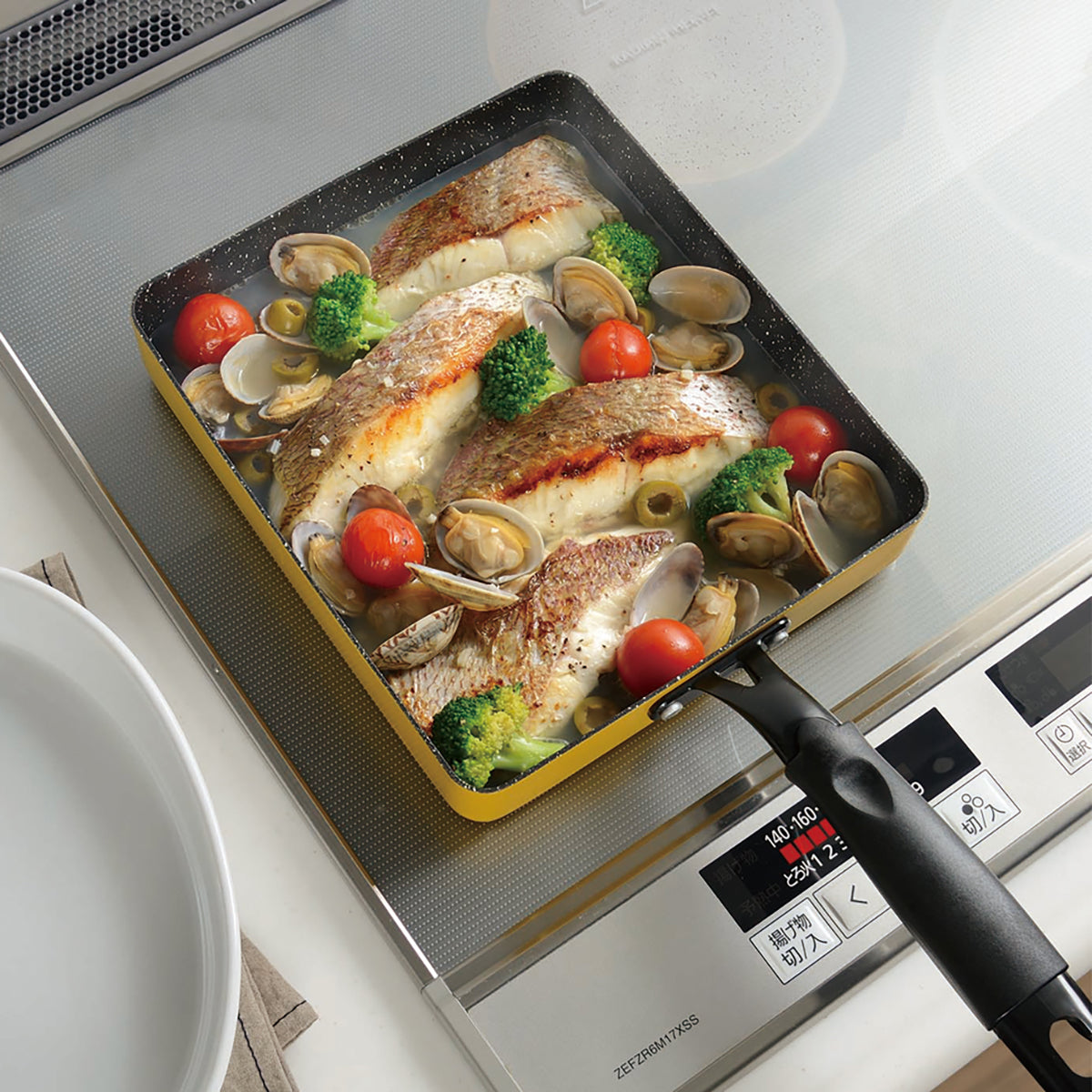 煮る・焼く・茹でる・炒める、とマルチに活躍してくれる、コンパクトな四角いフライパンです。