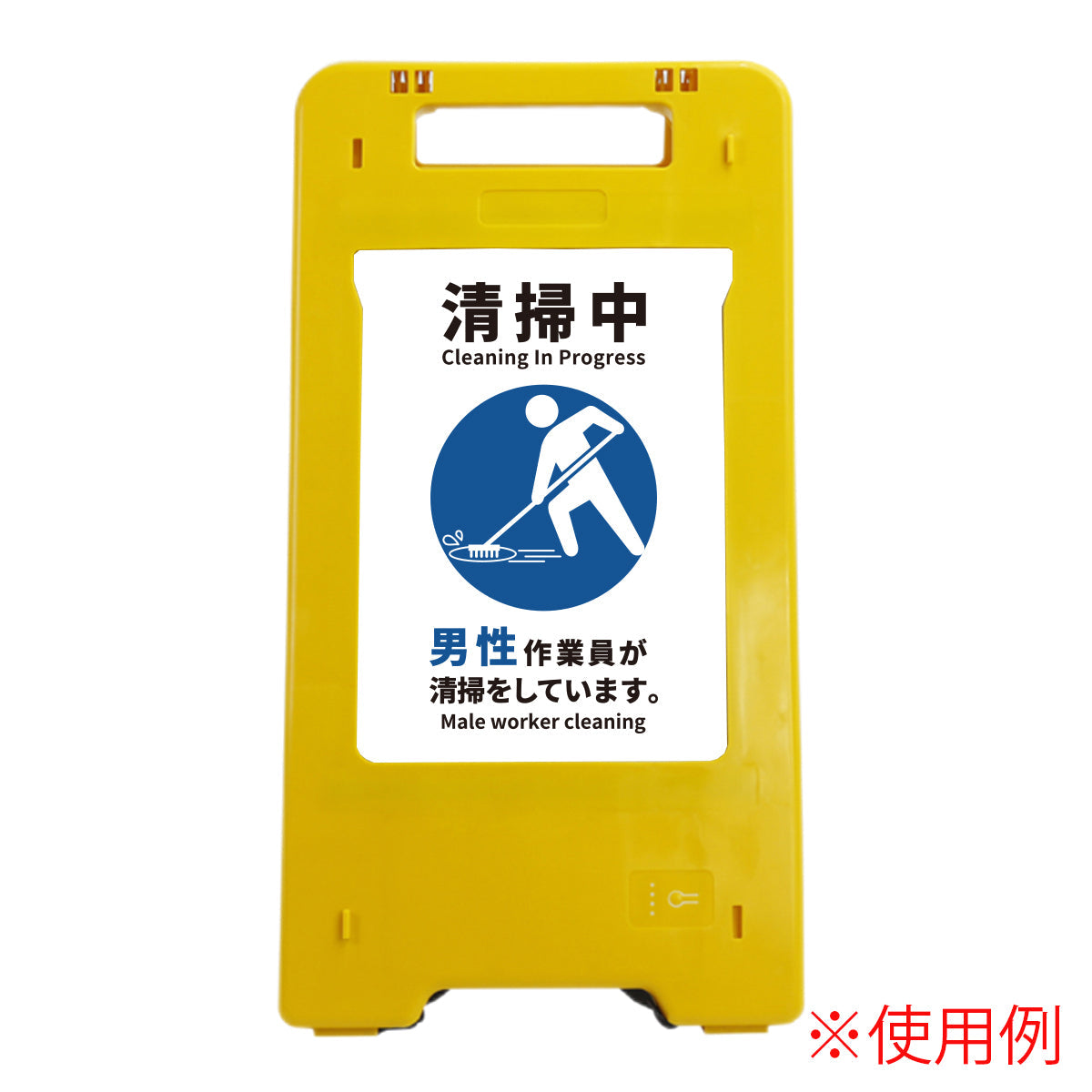ソーラー・充電式LED サインスタンド専用 板のみ 清掃中 男性作業員が清掃をしています。