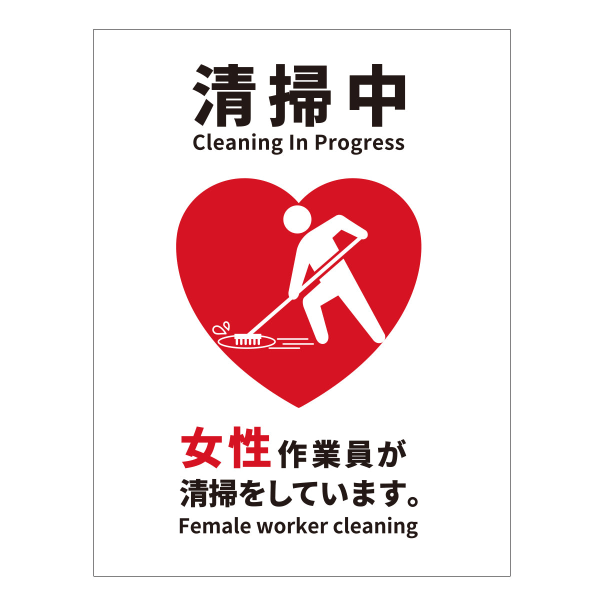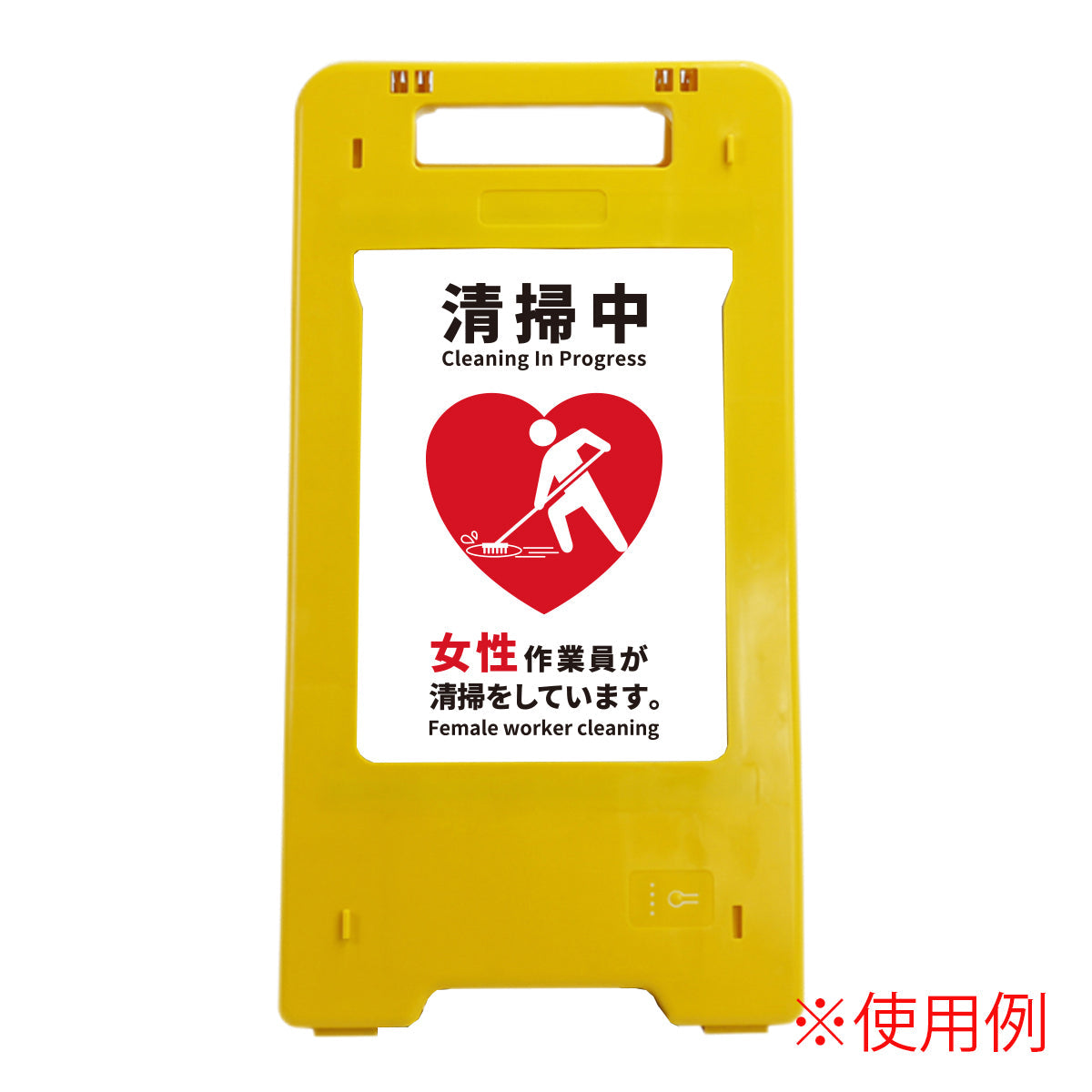 ソーラー・充電式LED サインスタンド専用 板のみ 清掃中 女性作業員が清掃をしています。(ハート)