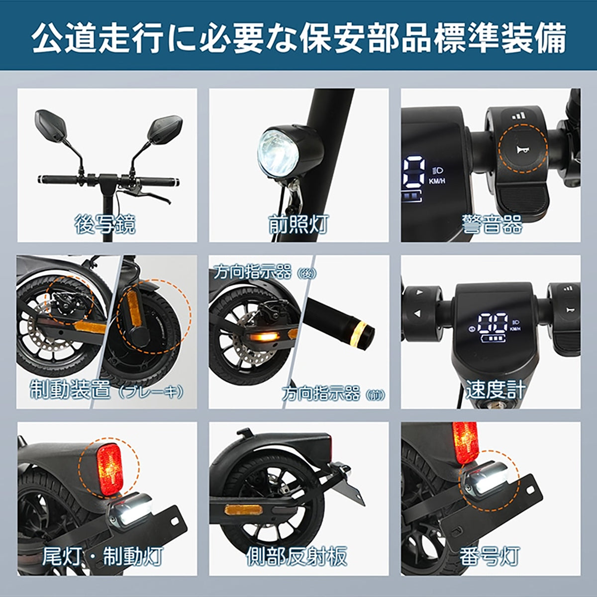 電動キックボード 折り畳み式 原付1種免許必須 歩道不可・公道走行可能 グレー