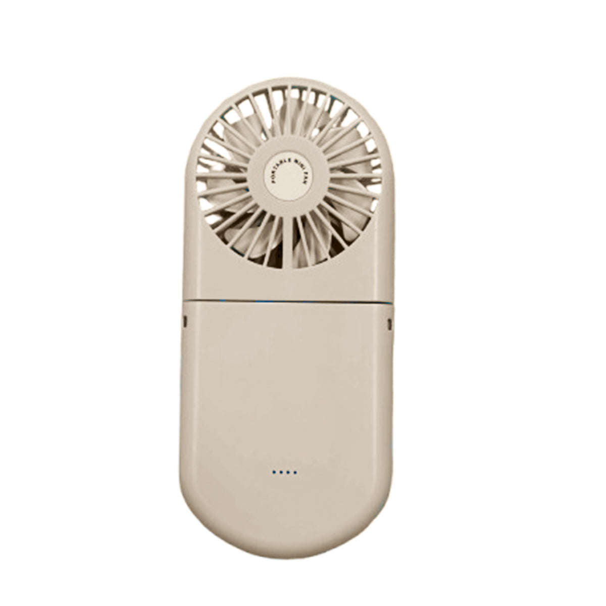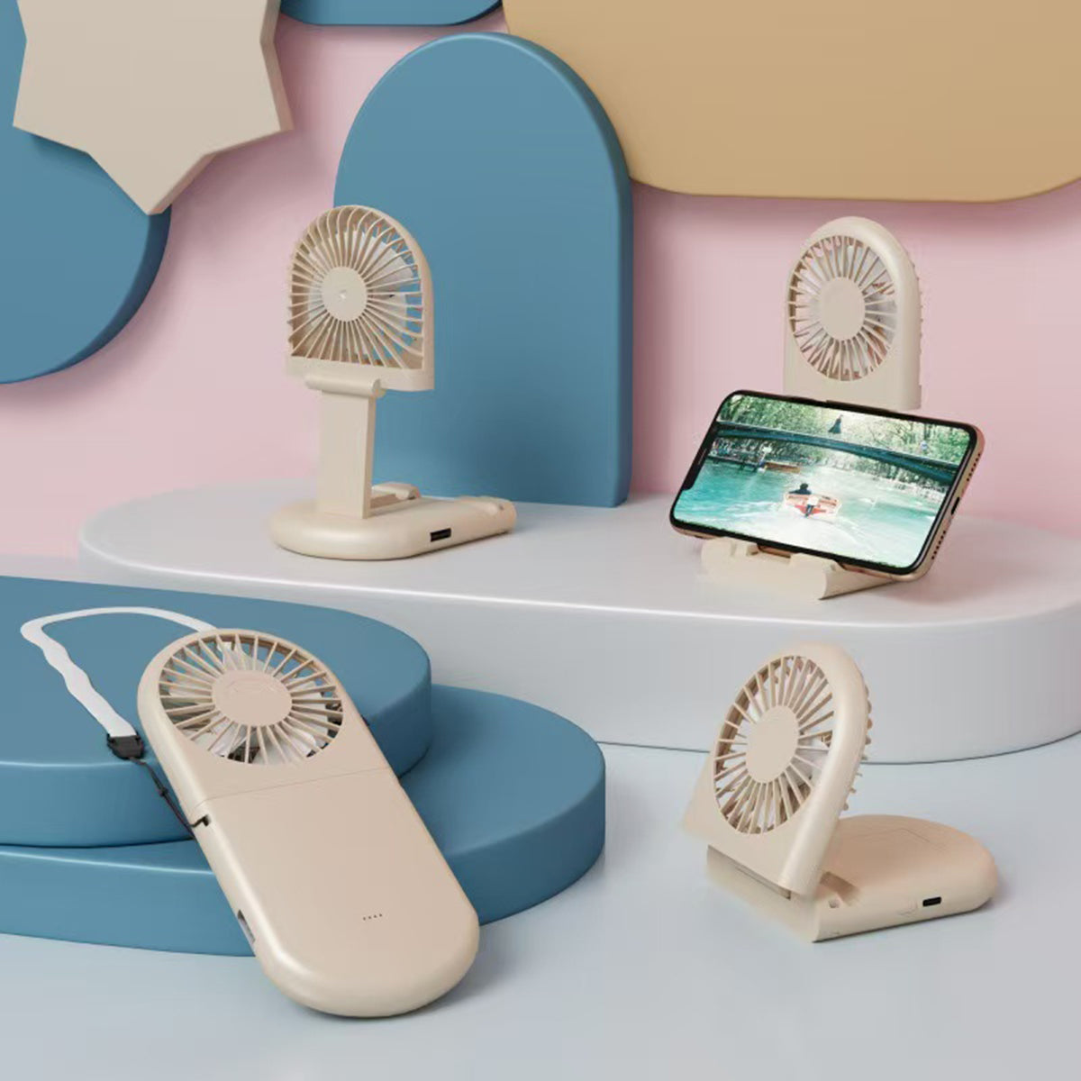コロンとした丸いフォルムがかわいらしい、スマホスタンドにもなる折りたたみ式のハンディファン。