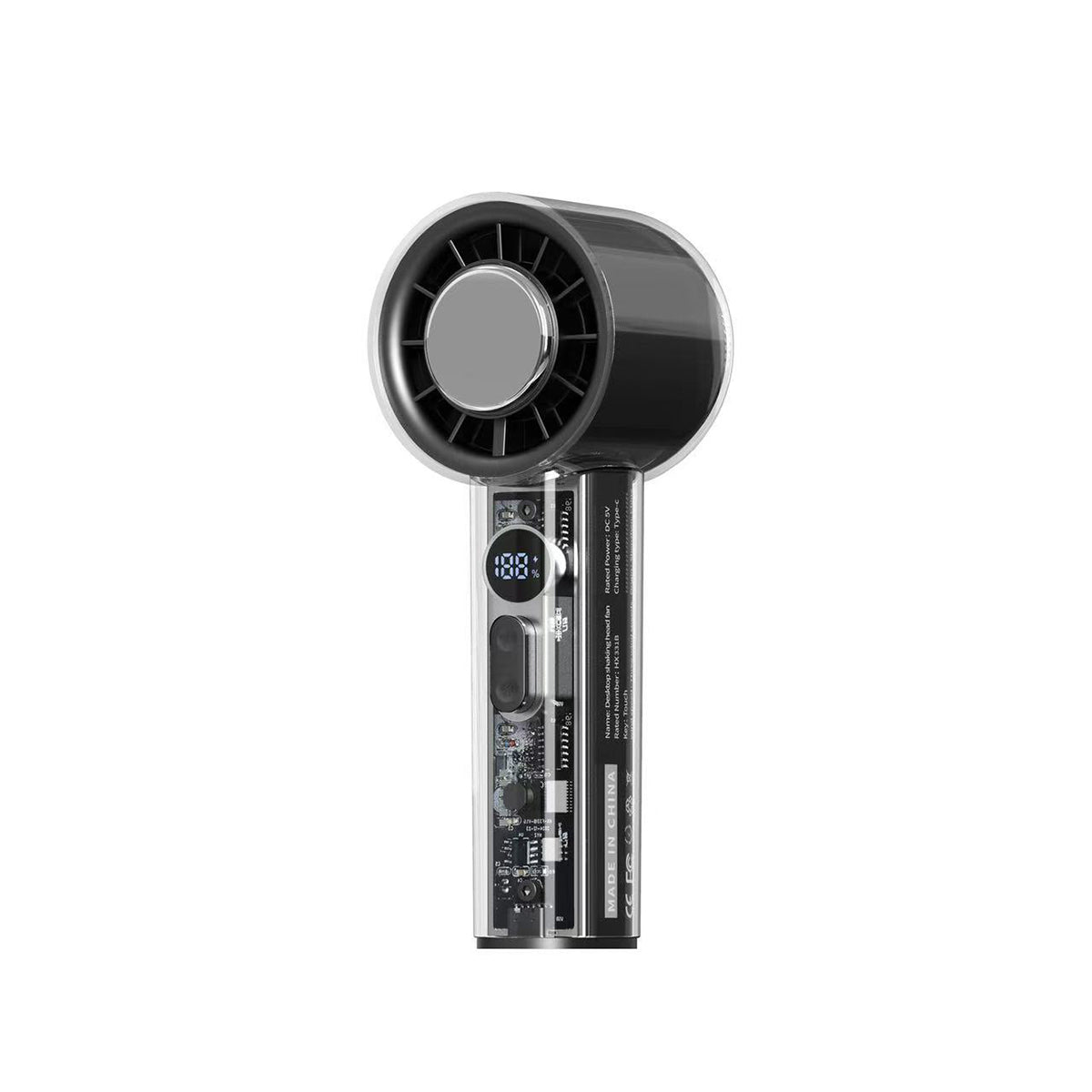 持ち手が透明で、メカニカルデザインが光るハンディファンが登場!最大の特徴は、100段階の無段階風量調整。